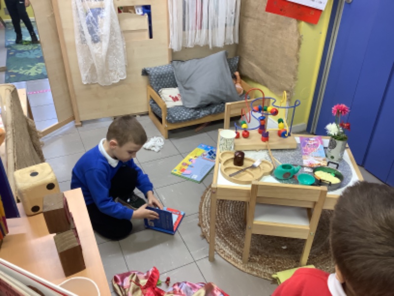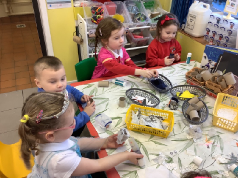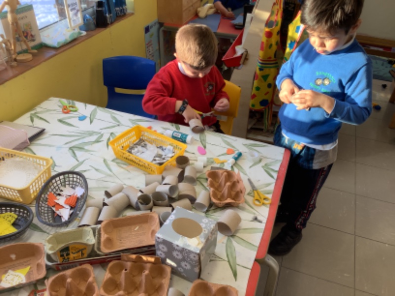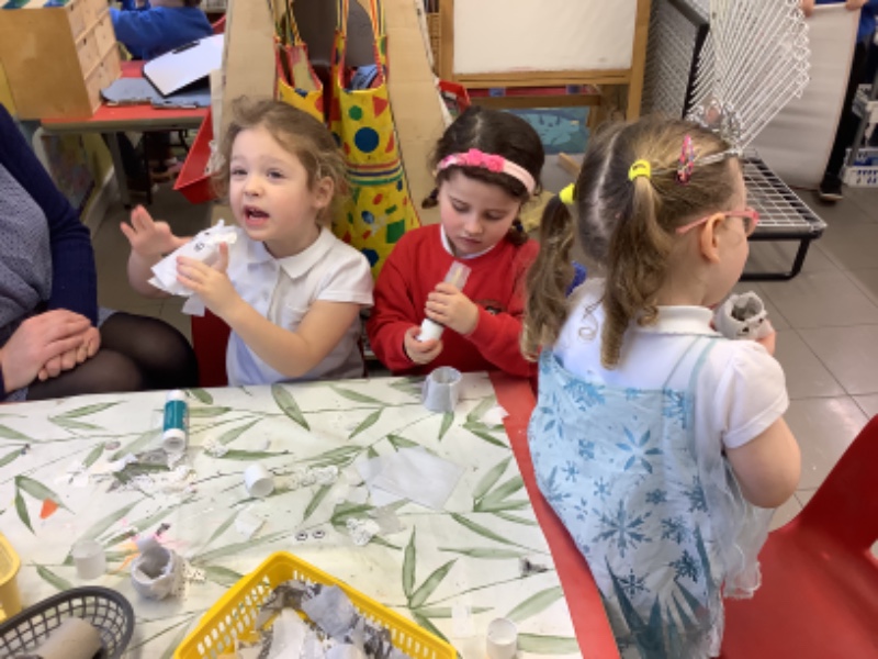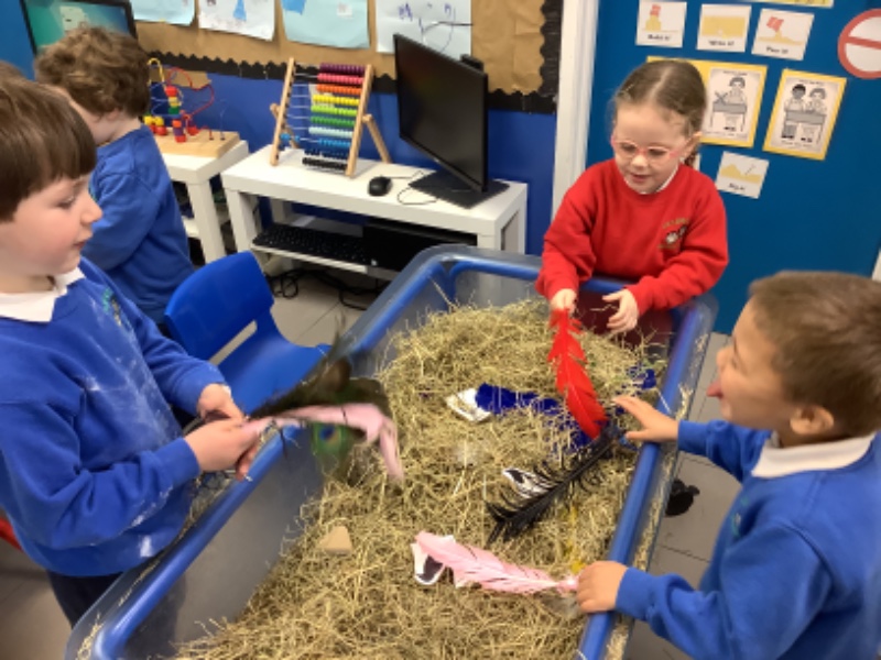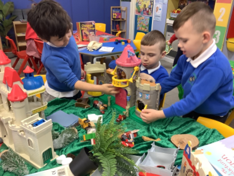 This week we are learning about life around the world as we find out about Chinese New Year. We are building castles and playing with dragons, princesses and knights in shining armour. It's also bird Week and we've been making binoculars with Miss Park and painting pictures of garden birds too.