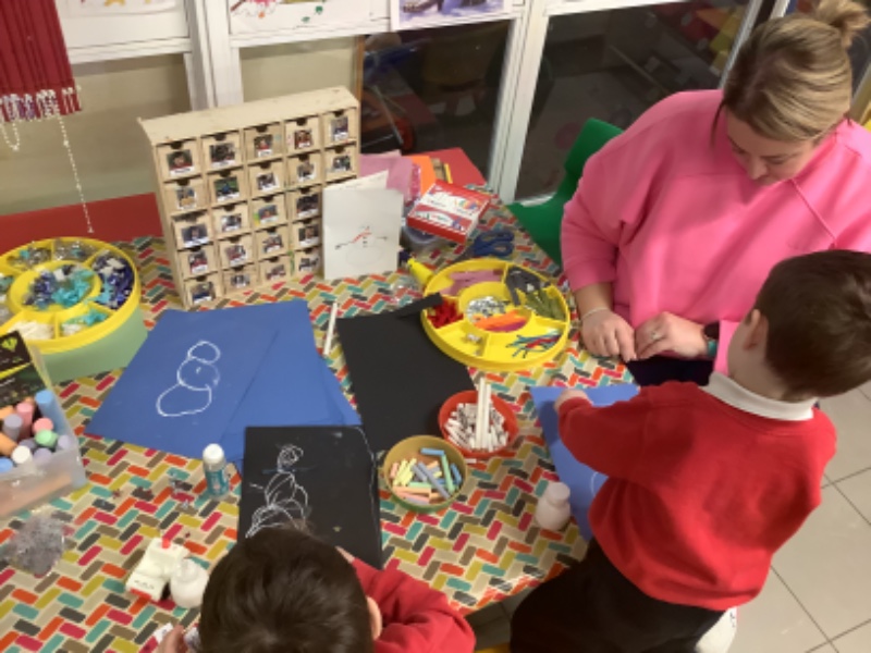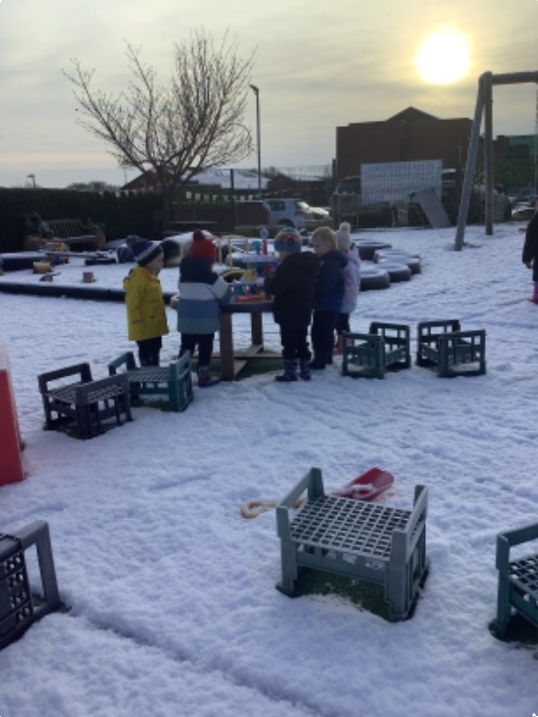 The children have settled back into school after Christmas holidays and have been very busy exploring the snow, painting Jack Frost, using chalk to create snowmen and enjoying our first Kidzwellness session of 2025, alongside all our normal learning through play.