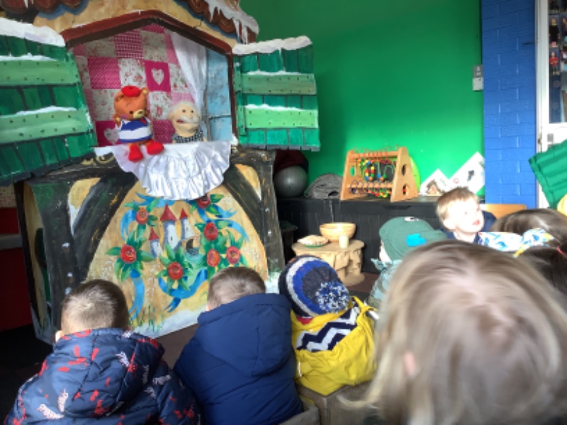Today we had a lovely visit from Mr Hulaballo. He brought lots of puppets and props with him. He told us lots of stories and we joined in using actions and singing songs.