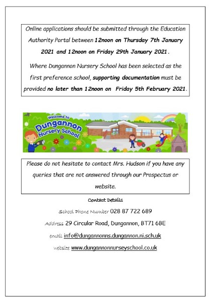 Dungannon Nursery School Prospectus is available to view in full on the Admission section of our website.