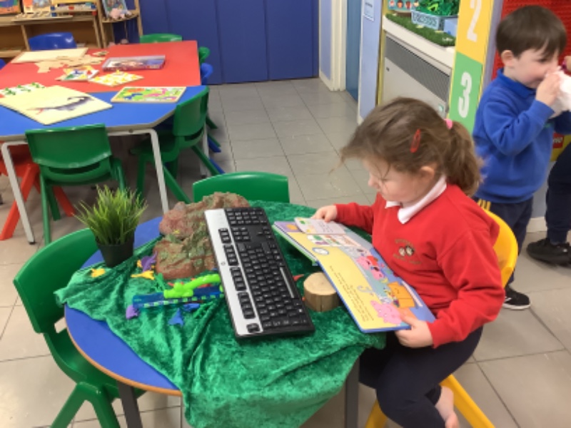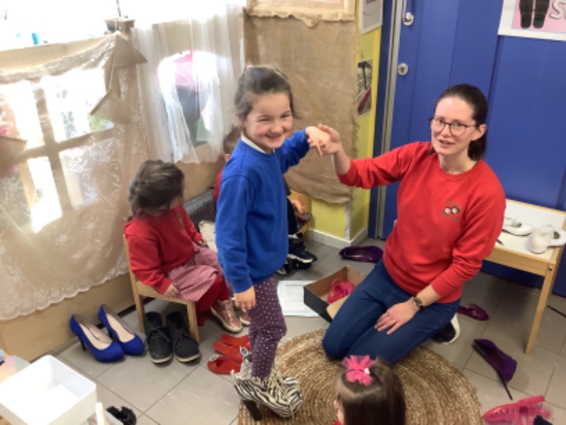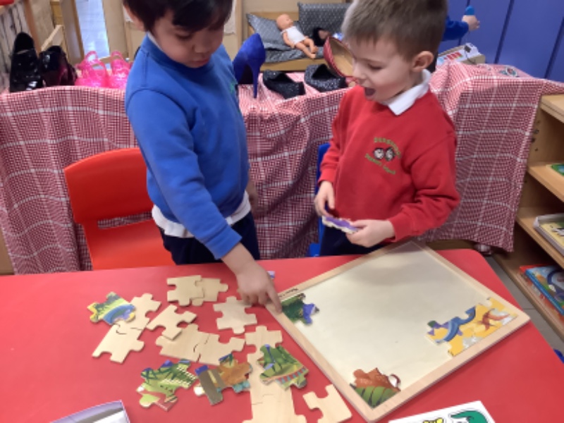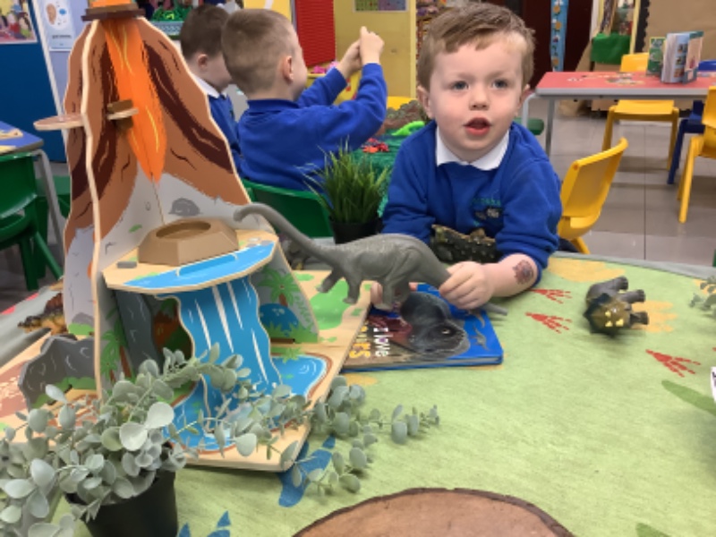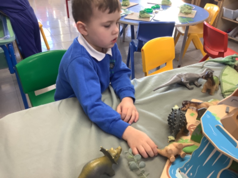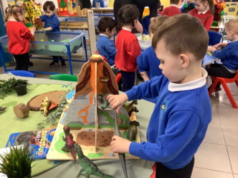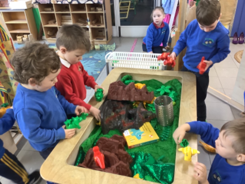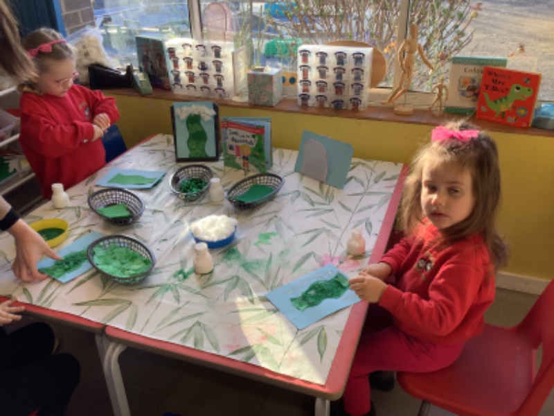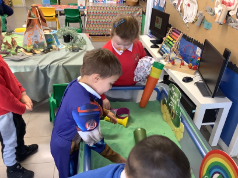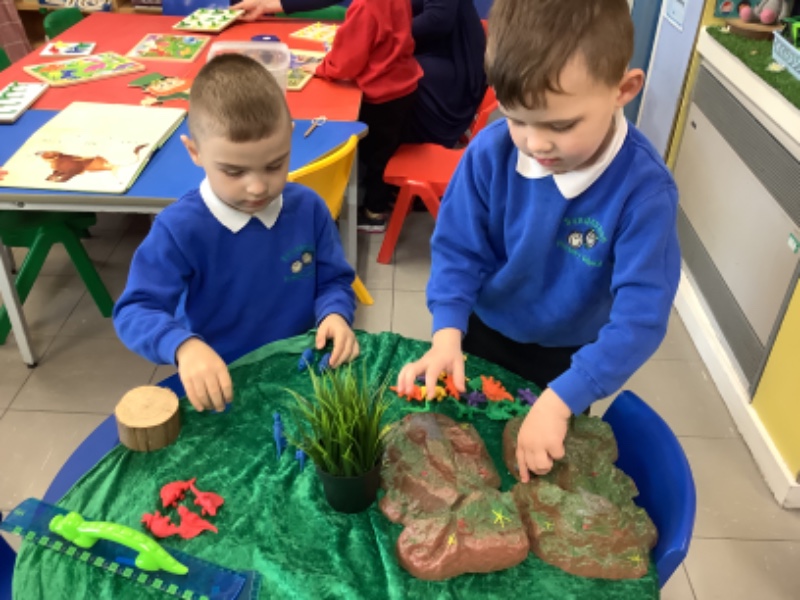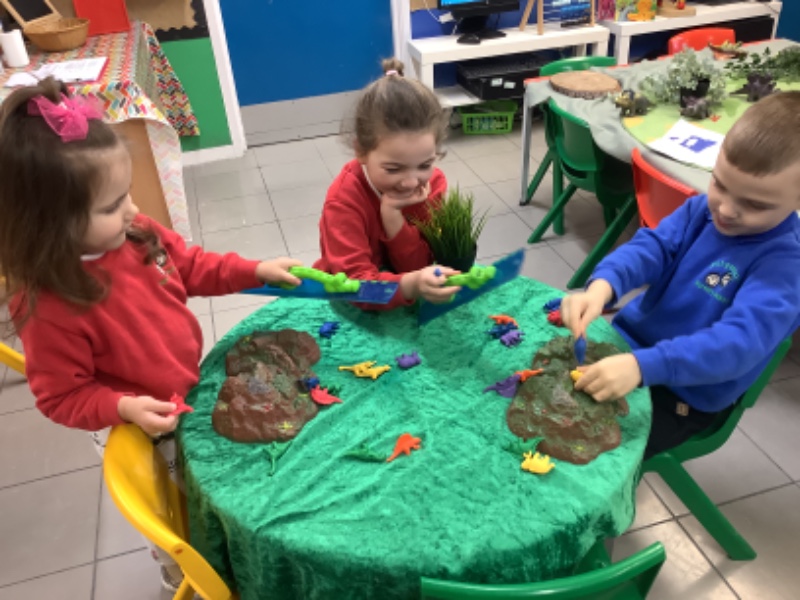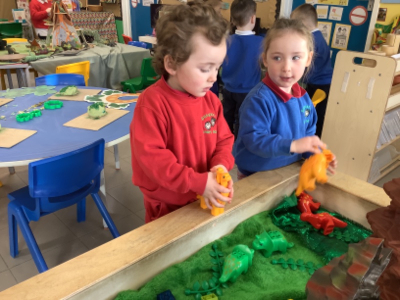 We are learning about dinosaurs and St. Patrick. We've been playing The Elves and the Shoemaker.