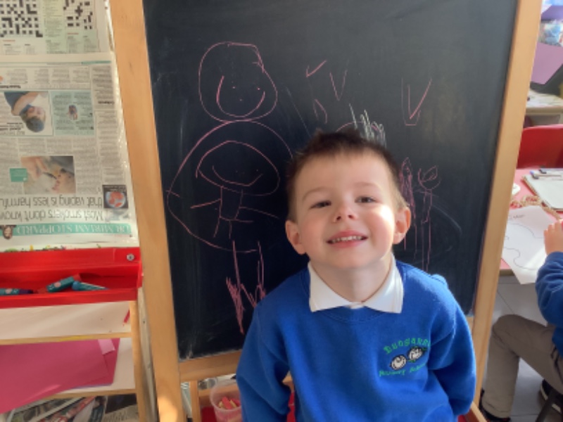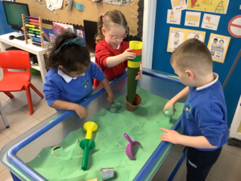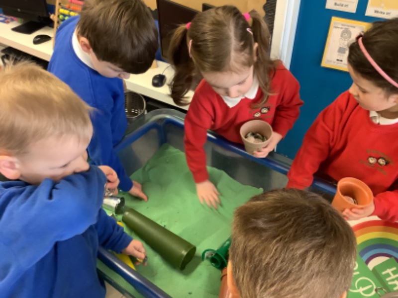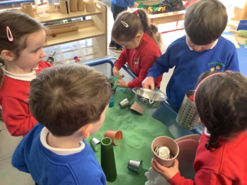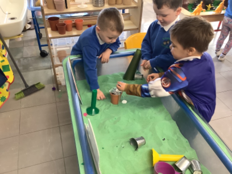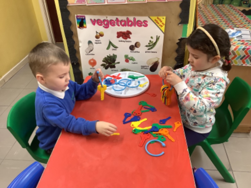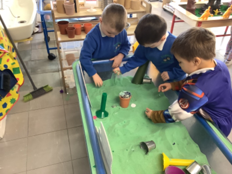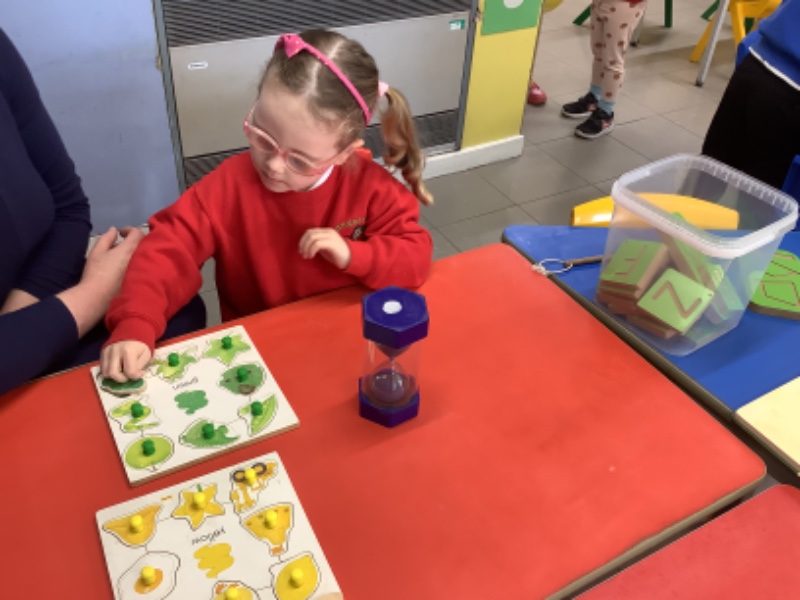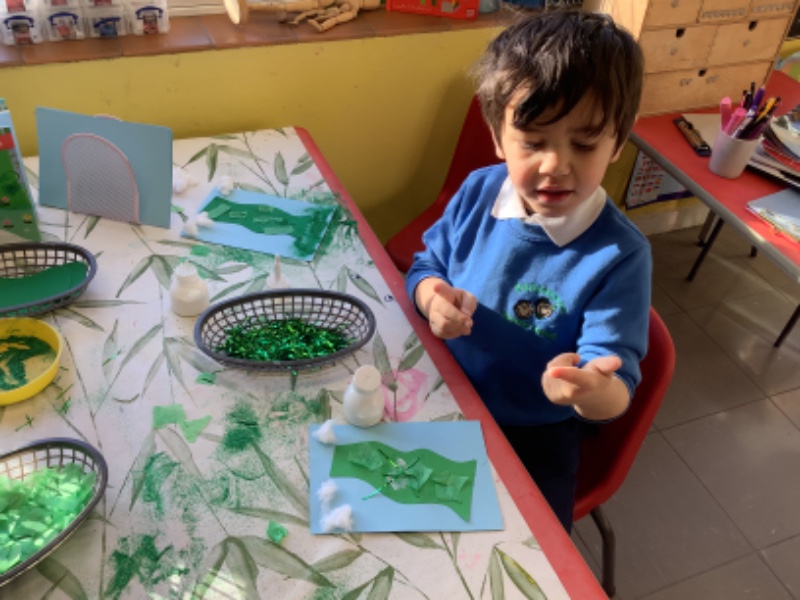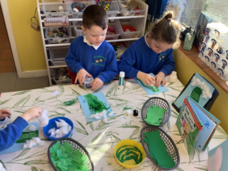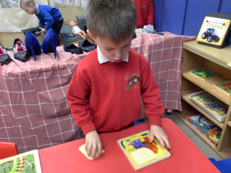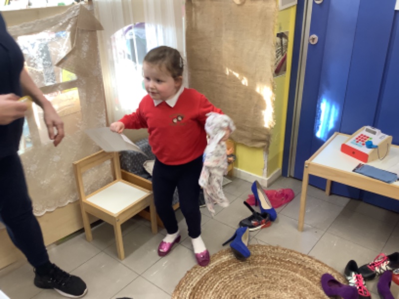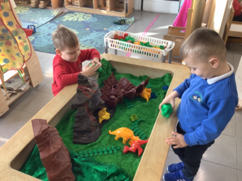 We are learning about dinosaurs and St. Patrick. We've been playing The Elves and the Shoemaker.