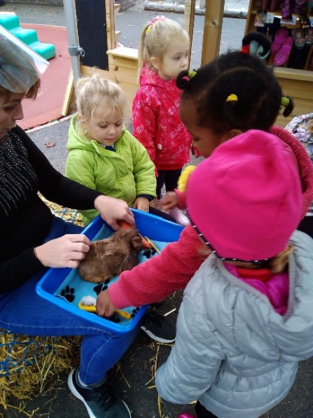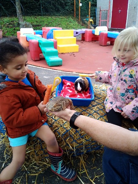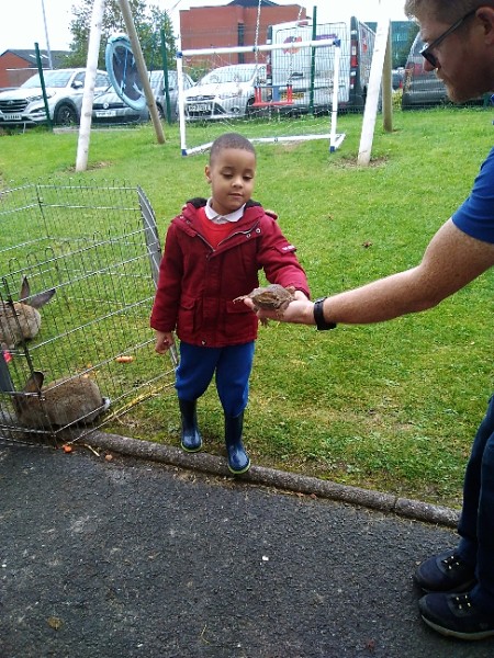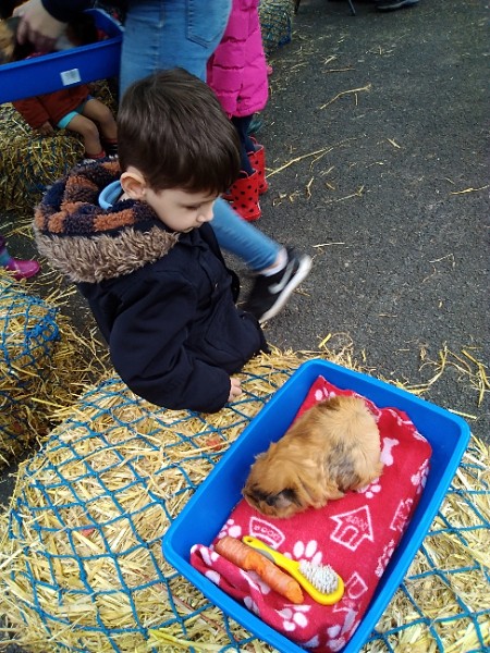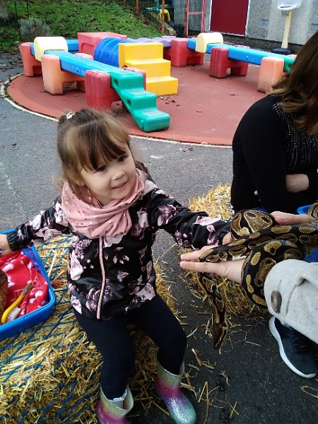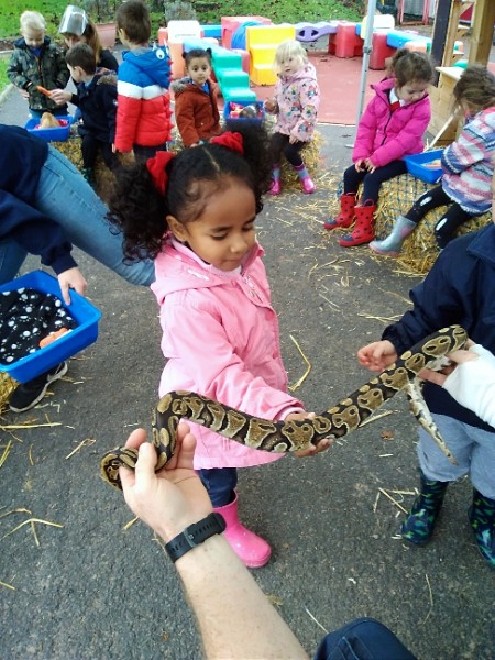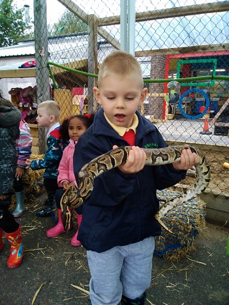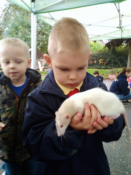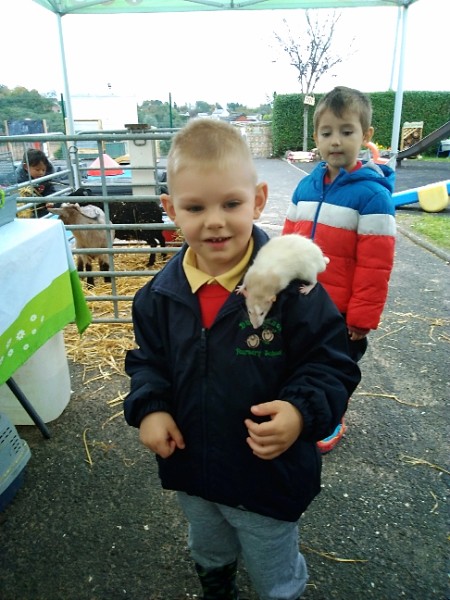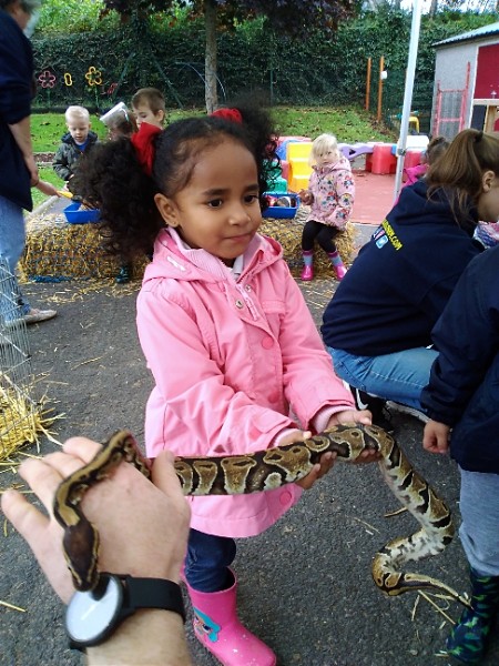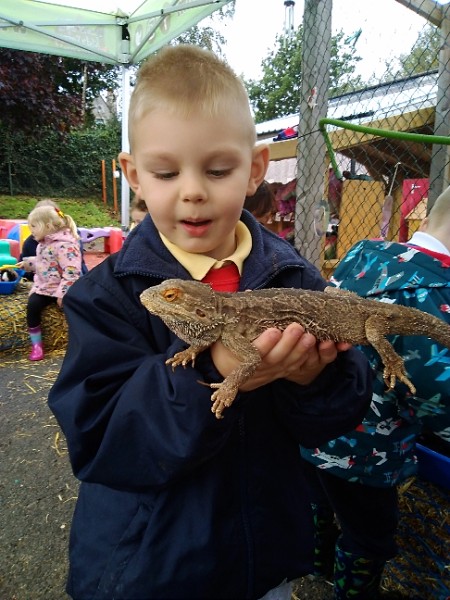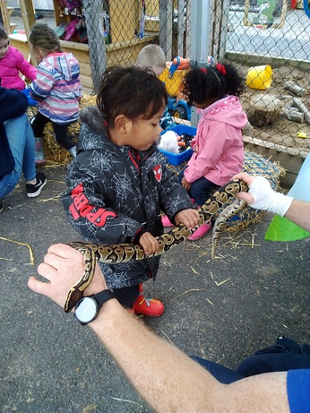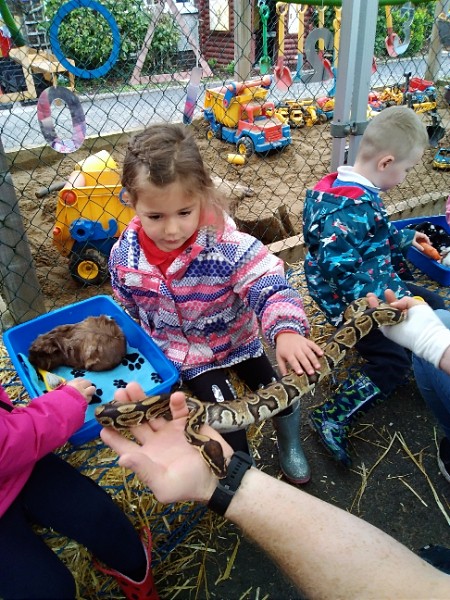 On Wednesday Kidz Animal Farm visited our school. We were able to pet the animals and learned a little about what animals eat and how to look after them. Some children were very brave and held animals we wouldn't normally find on a farm here like snakes, meerkats and bearded dragons. We also saw rabbits, guinea pigs, ducks, chickens, hedgehogs, rats, sheep and goats.