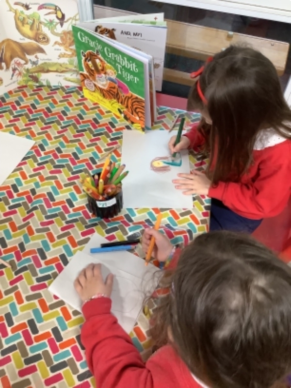 Nursery 2's days are busy busy, from developing our super listening/attention skills during small group story time, creating sounds of animals using different instruments, practicing writing our names to learning about all the animals in the zoo in line with our current topic.