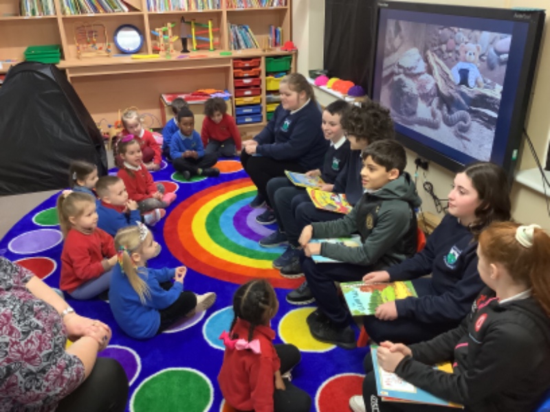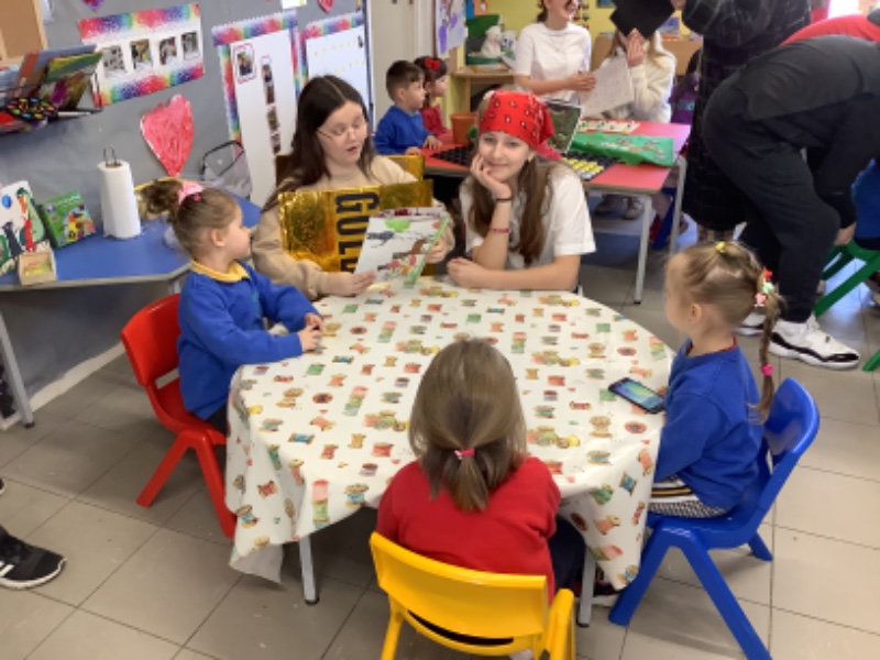 Nursery School celebrated book week with the help of p7 children from Edendork Primary and Dungannon Primary schools who came into Nursery school to read us stories.