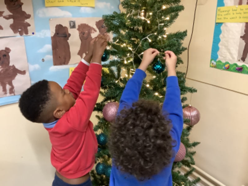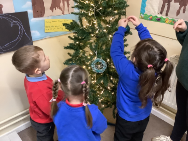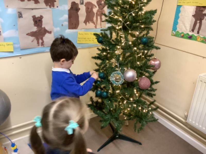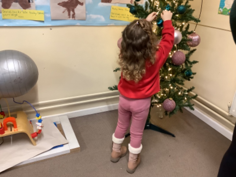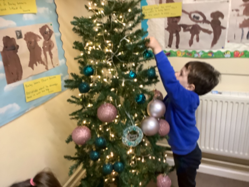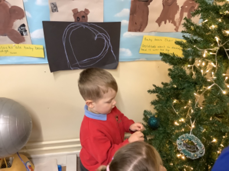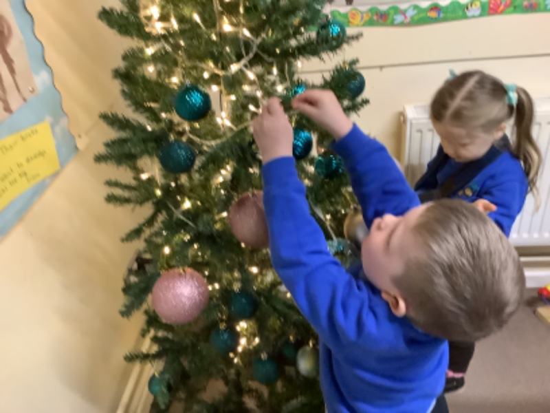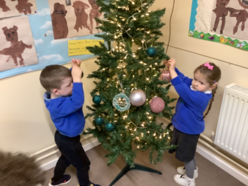 The boys and girls had great fun decorating our class Christmas tree. We had to stretch very tall to ensure all branches had a bauble and Oisin placed our shiny star on top. Isn't it beautiful?!