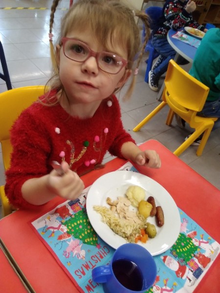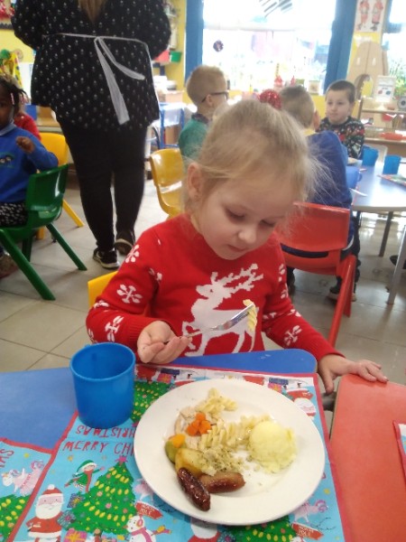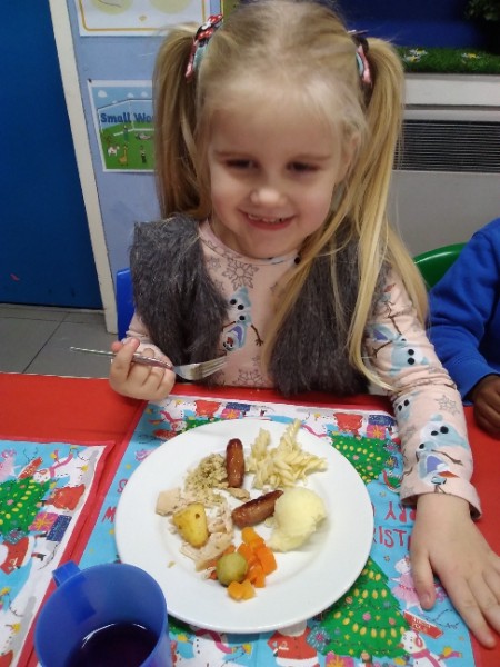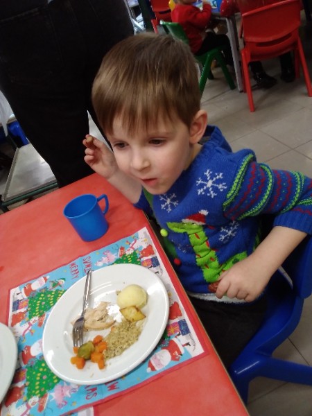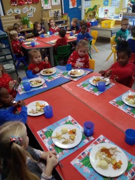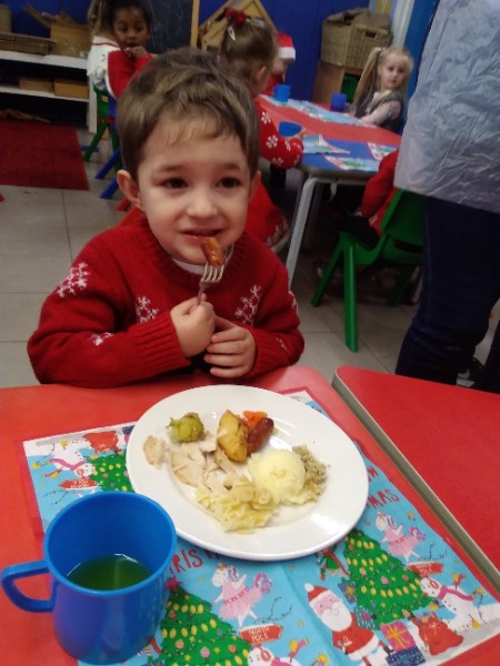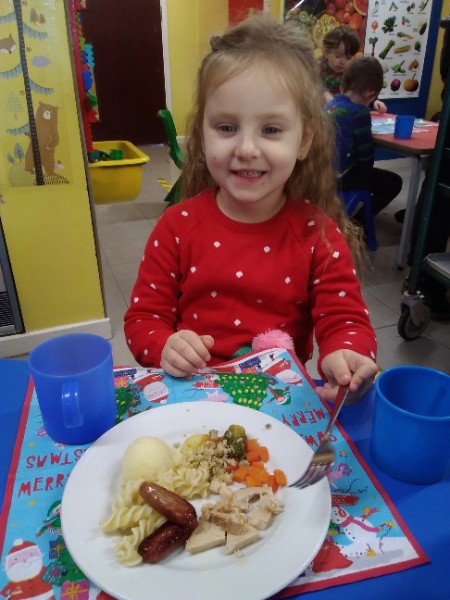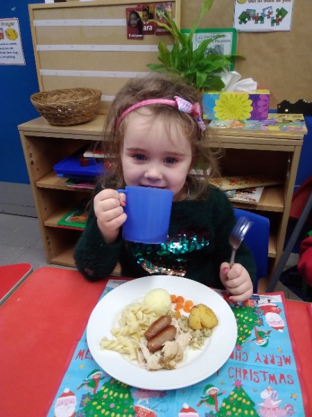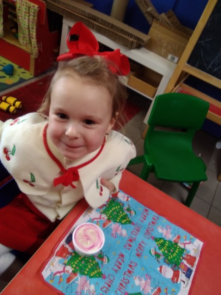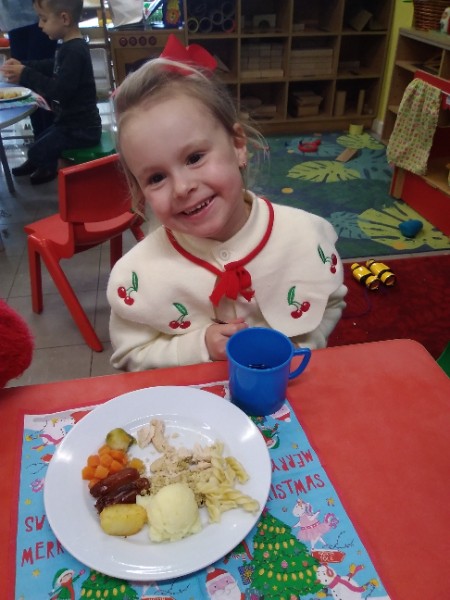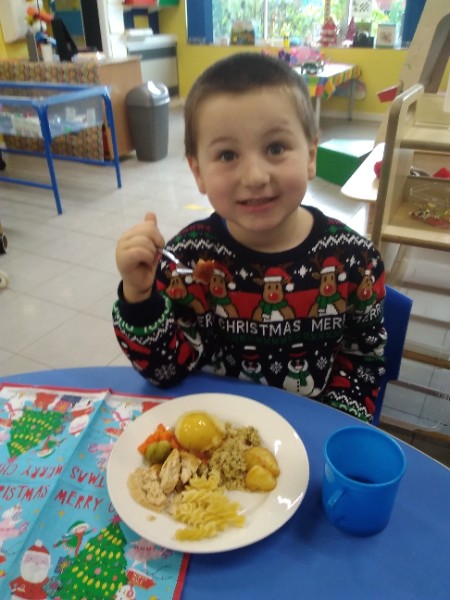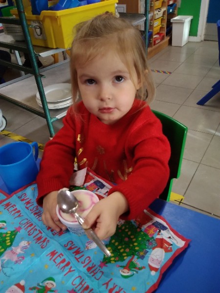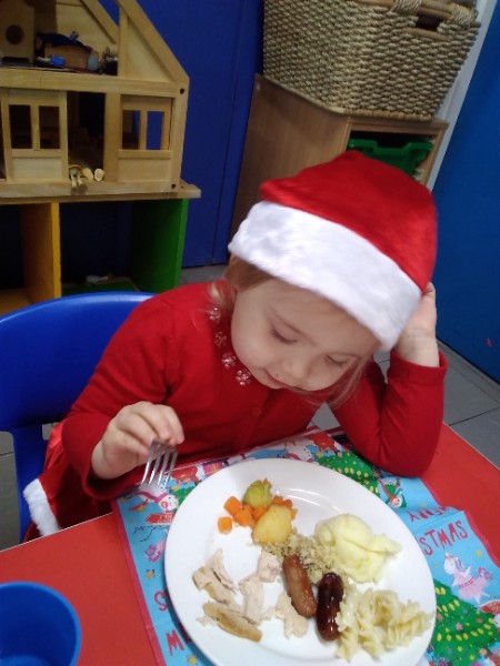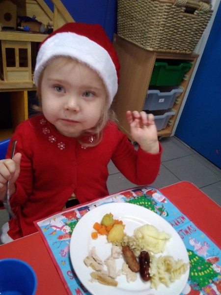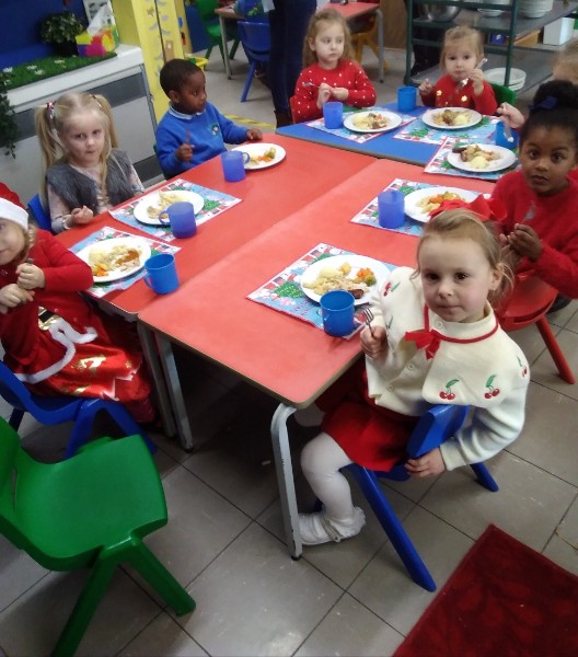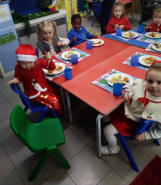 The children enjoyed a special Christmas Day at Nursery today. The children looked great in their Christmas Jumpers and Party clothes. Christmas snack of oranges, Christmas Cake and Mince Pies, Christmas biscuits and juice was enjoyed by everyone.