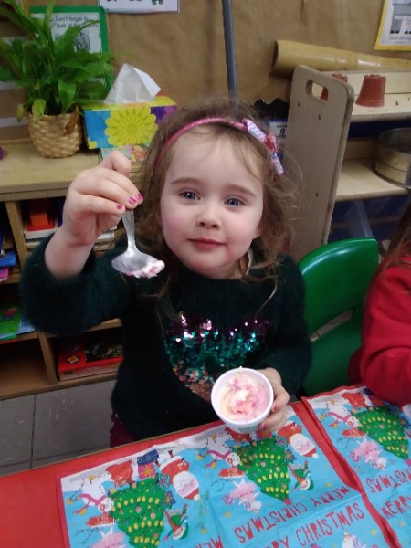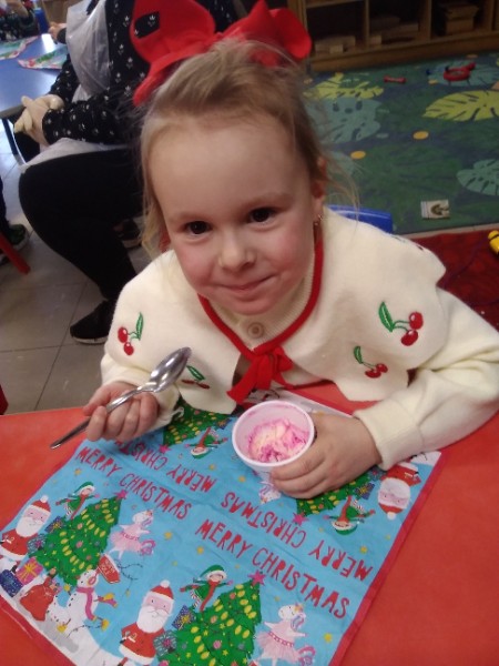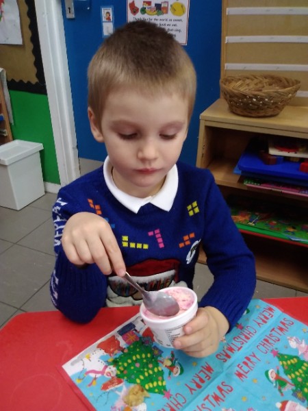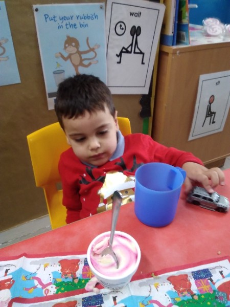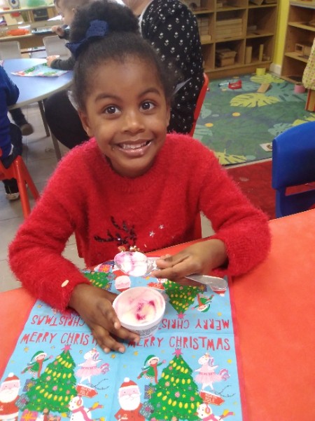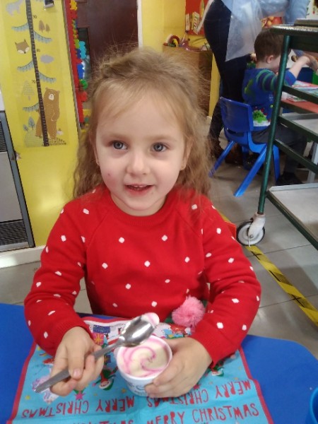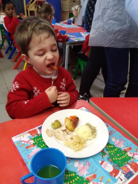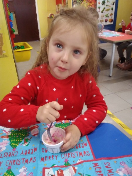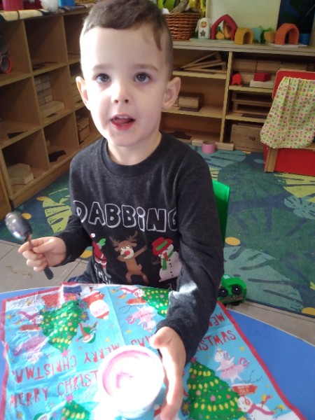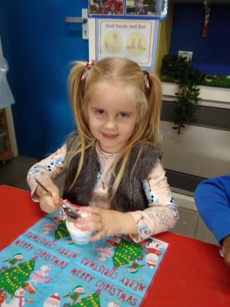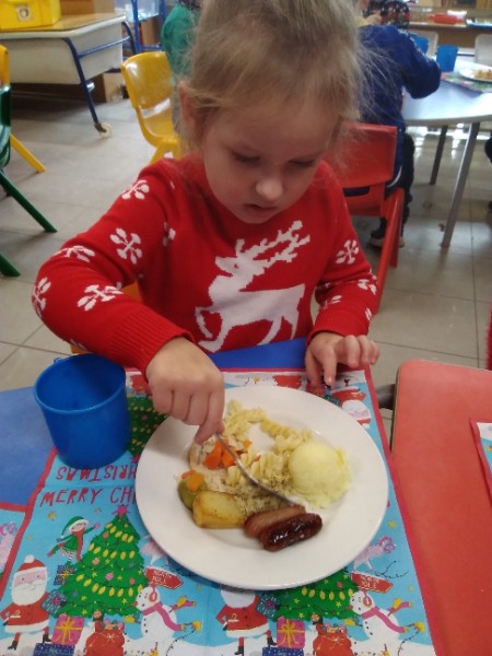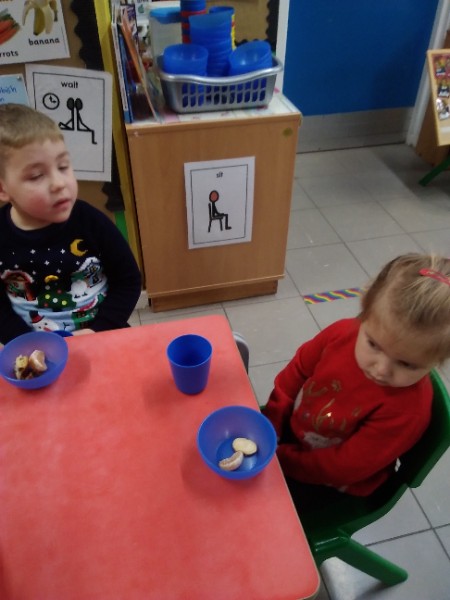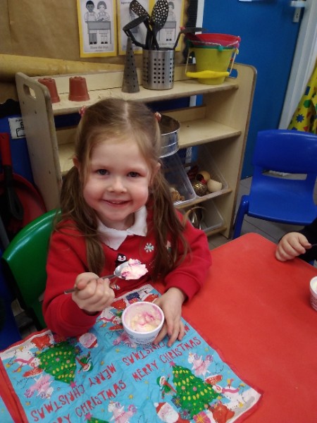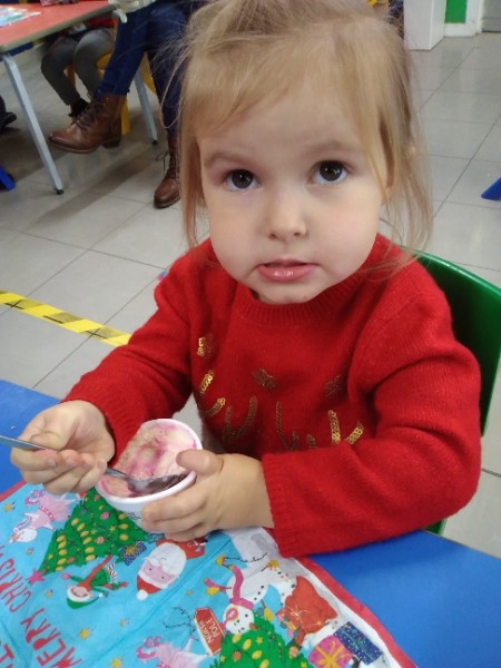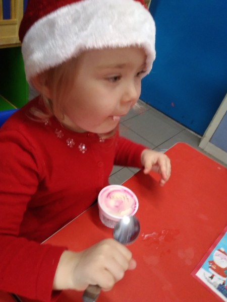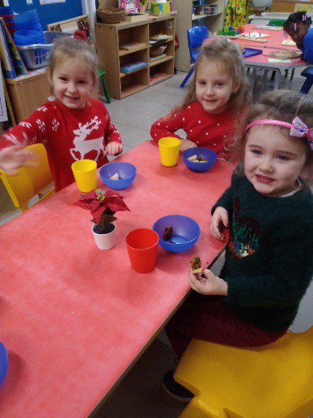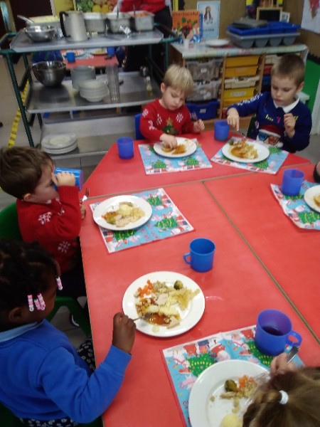 The children enjoyed a special Christmas Day at Nursery today. The children looked great in their Christmas Jumpers and Party clothes. Christmas snack of oranges, Christmas Cake and Mince Pies, Christmas biscuits and juice was enjoyed by everyone.