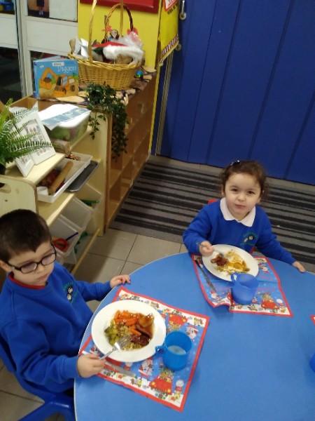 Everyone in Mrs Hudson's class had their Christmas Dinner on Thursday. It was very tasty. "This is so yummy" Thank you to Allison our cook for making us our dinner and to Eileen for doing the dishes.