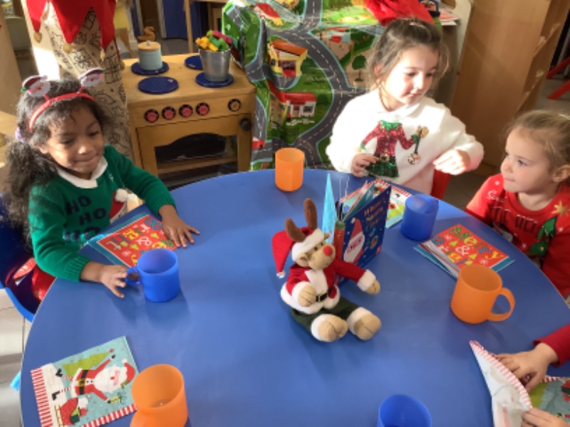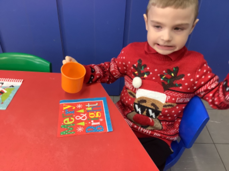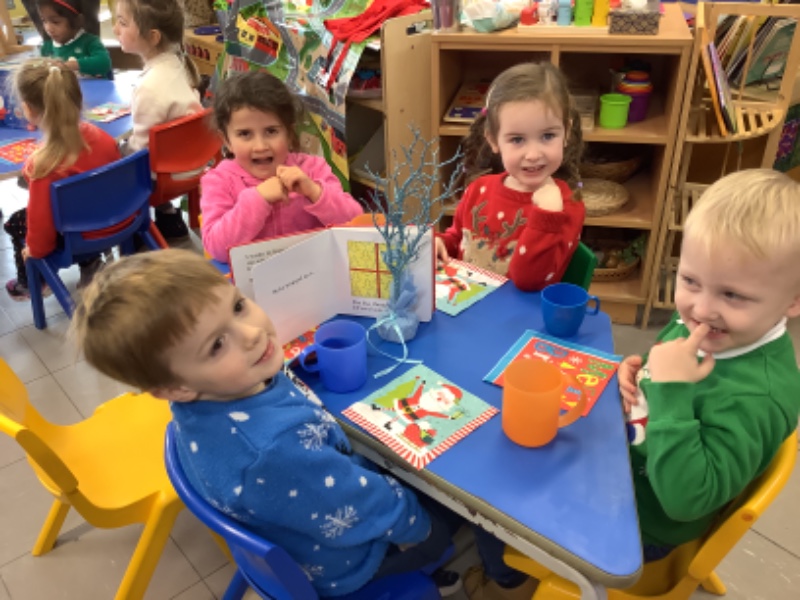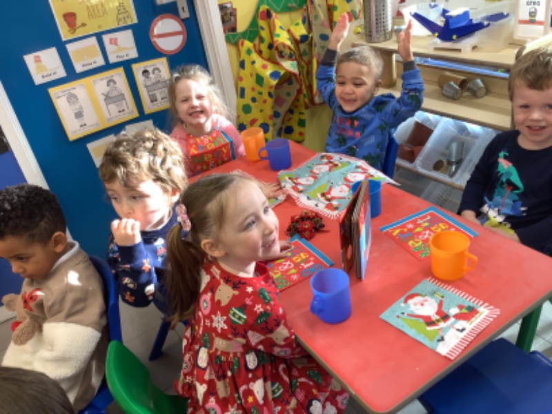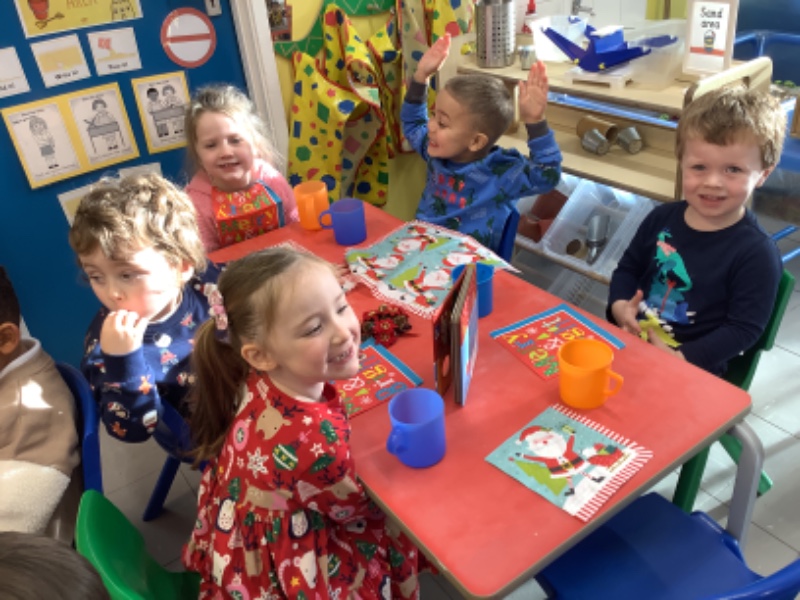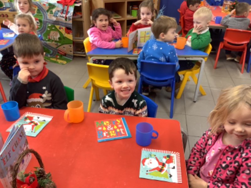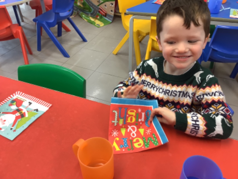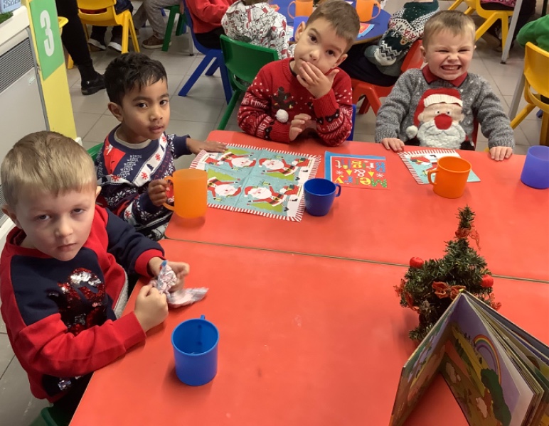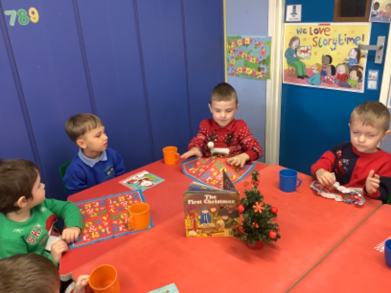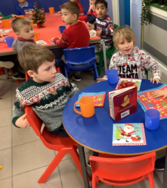Both nursery classes enjoyed their delicious Christmas Dinner altogether in Mrs. Hudson's room today. We had turkey, potatoes, carrots, sprouts, stuffing, cocktail sausage and gravy then a chocolate ice cream. And guess what? There was even a flurry of snow outside!
