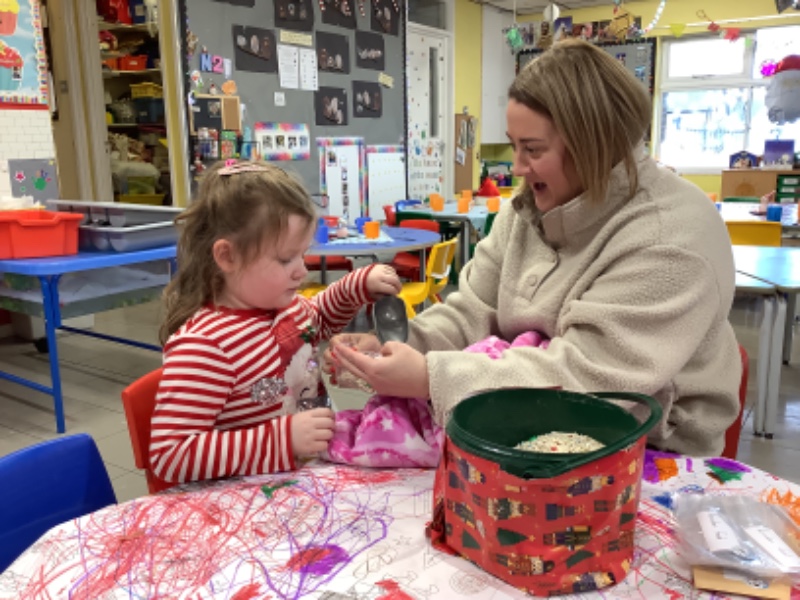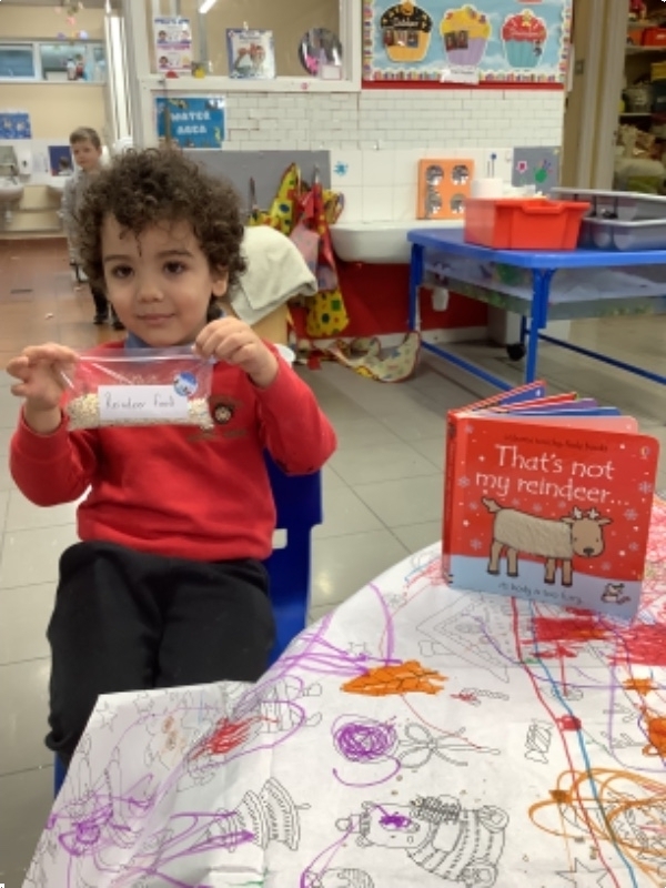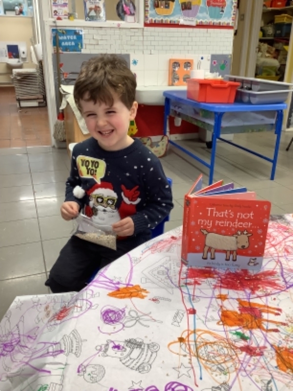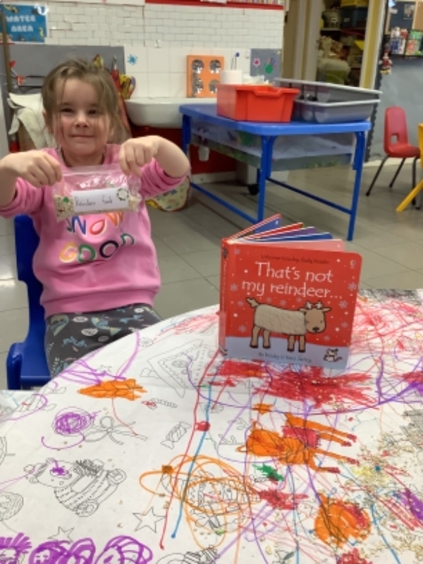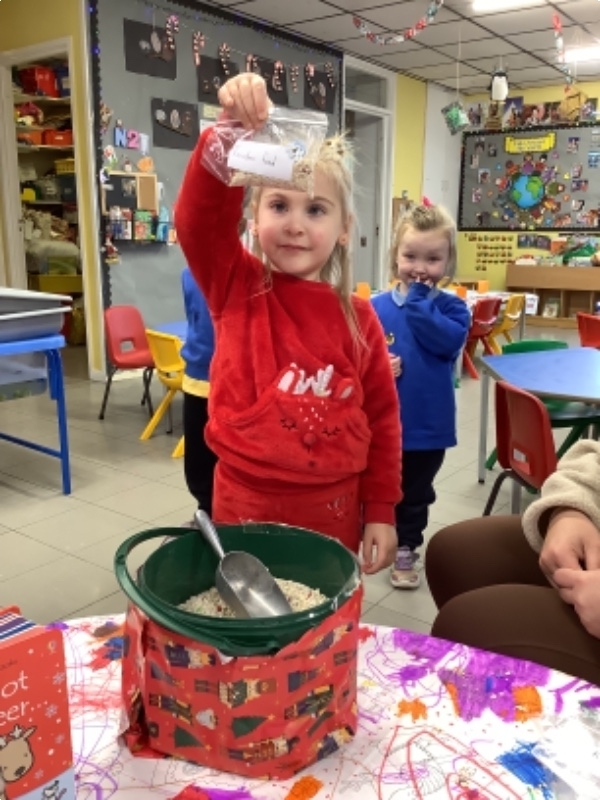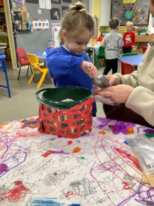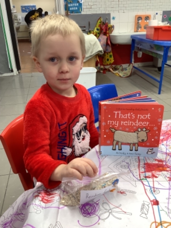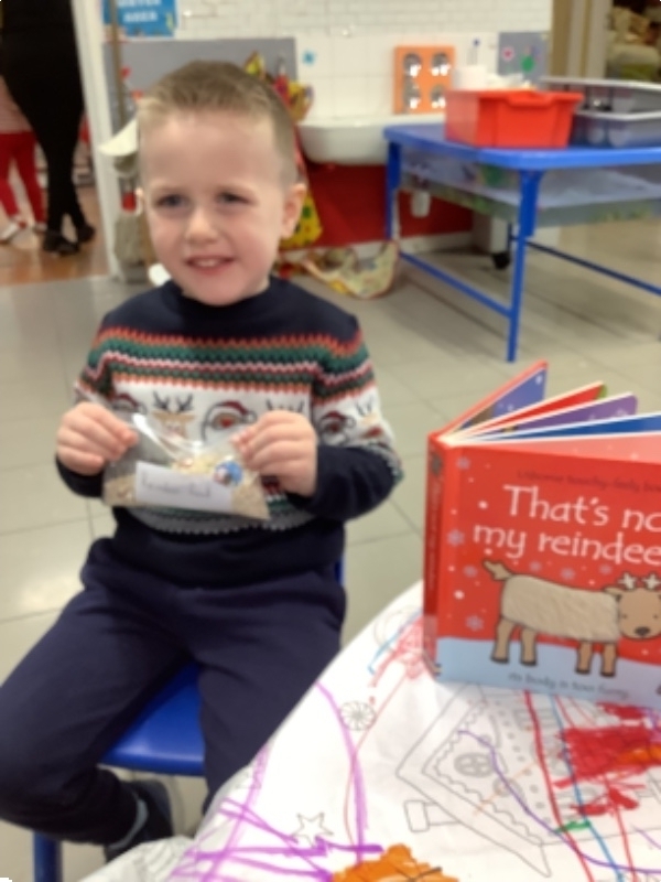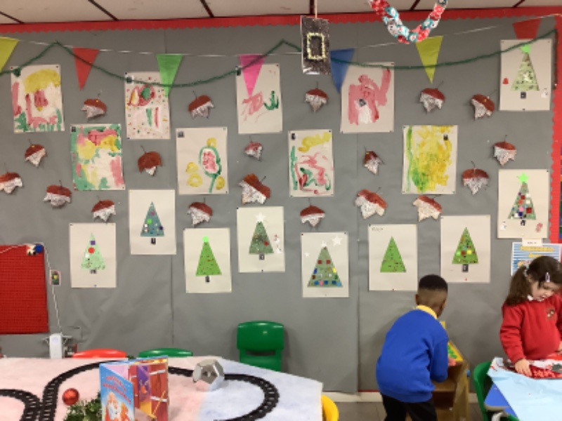 The children in nursery 2 have been busy in the lead up to Christmas. We made some beautiful Christmas trees, Santa leaves and even made special food for Santas reindeers.