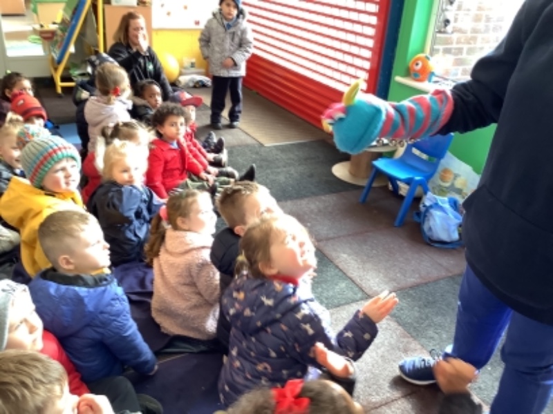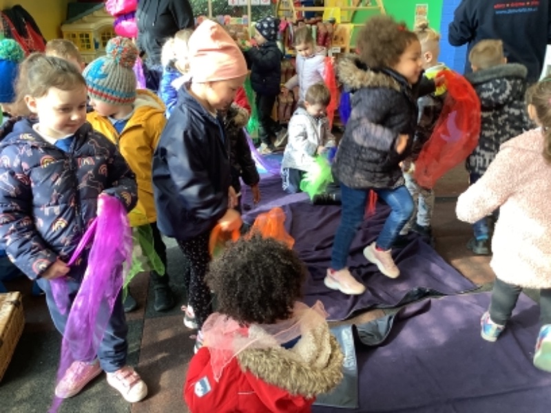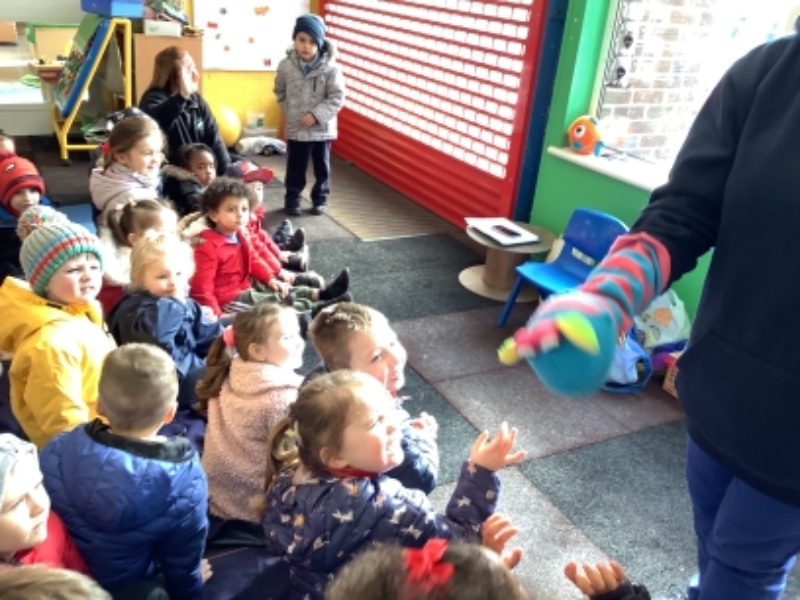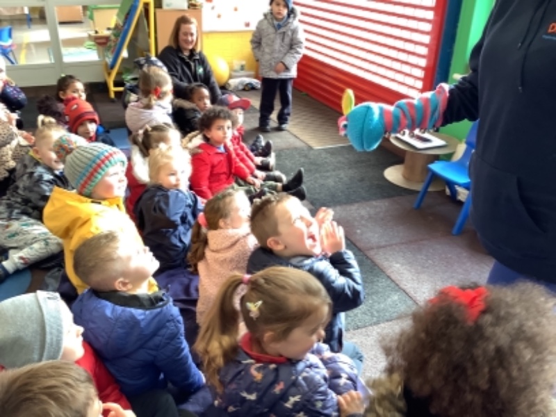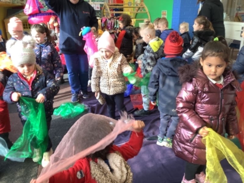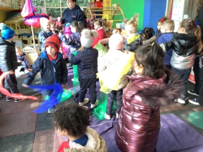 The children enjoyed some drama, dance and story telling by Sarah from Debutots. We heard all about an elephant called Eleanor who needed help make her listening ears work.