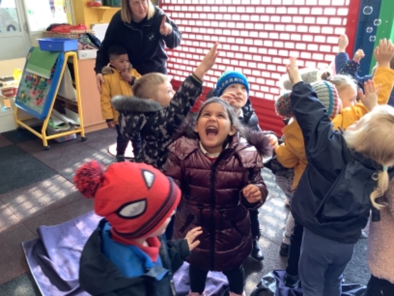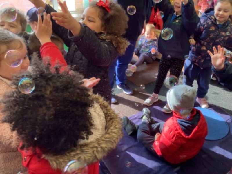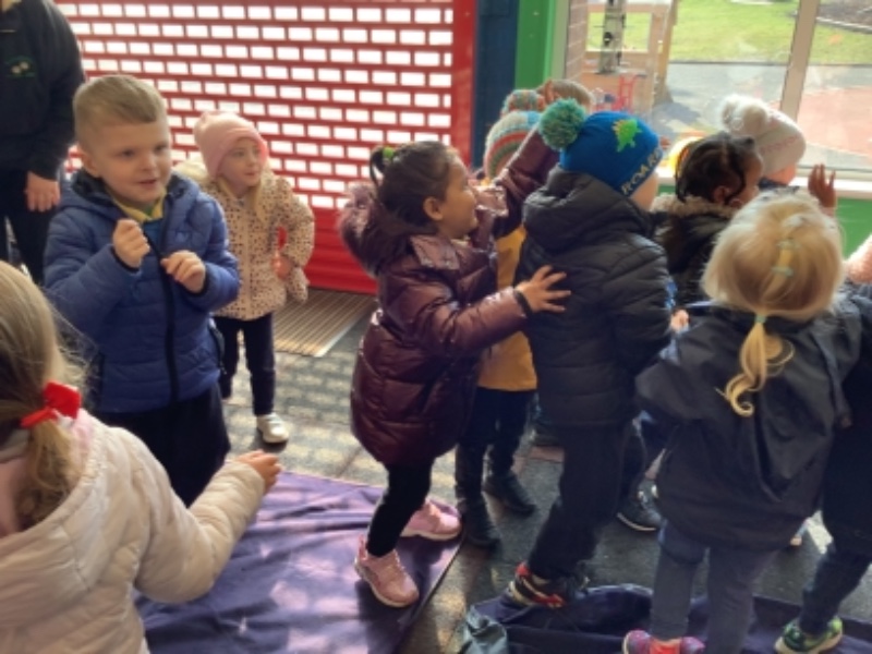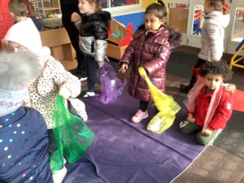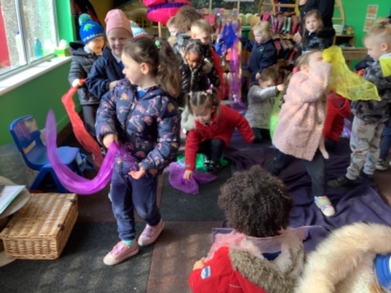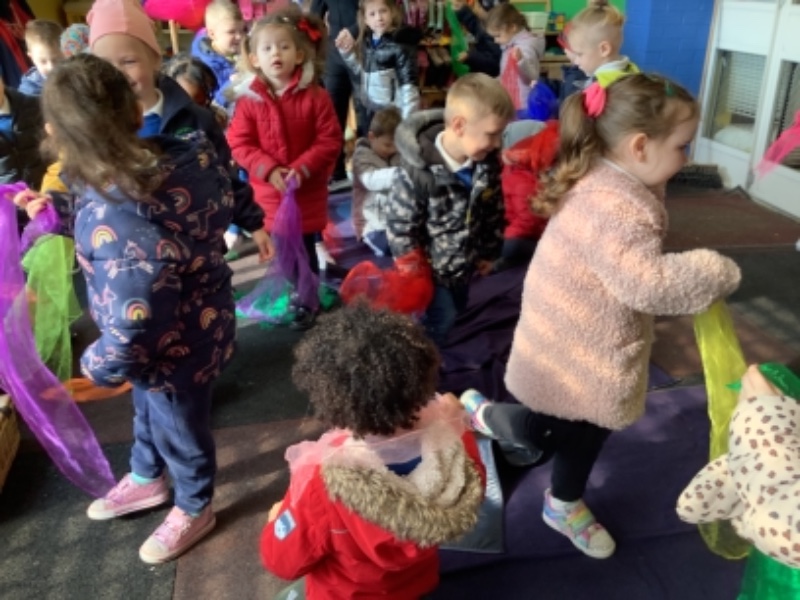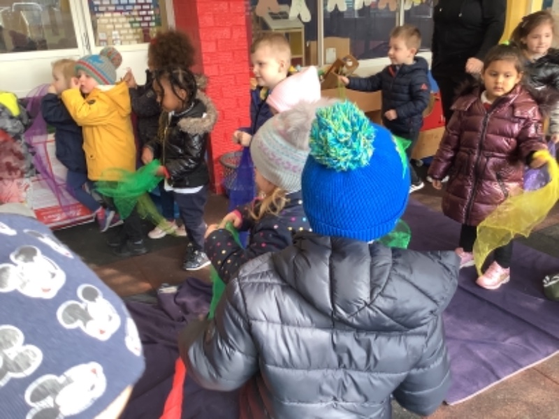 The children enjoyed some drama, dance and story telling by Sarah from Debutots. We heard all about an elephant called Eleanor who needed help make her listening ears work.