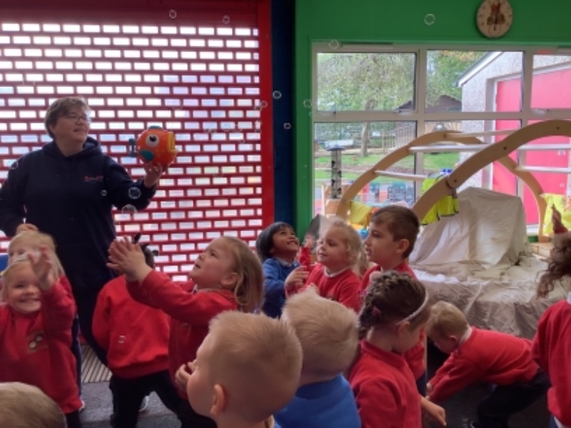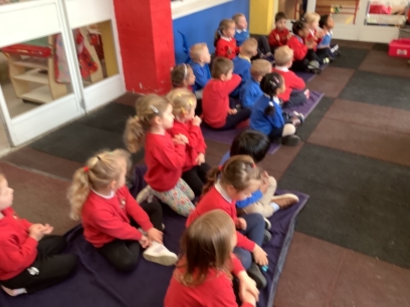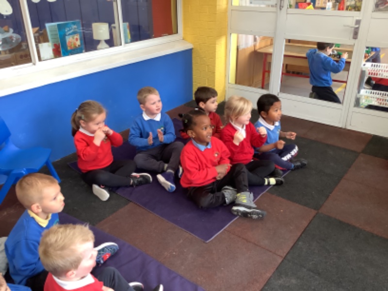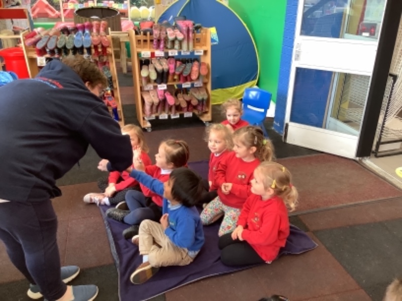 This week we listened and took turns to join in with a story about a sabre-tooth tiger with a toothache. As we roared pasted caves we finally found someone who could help us- a dentist.