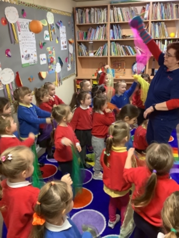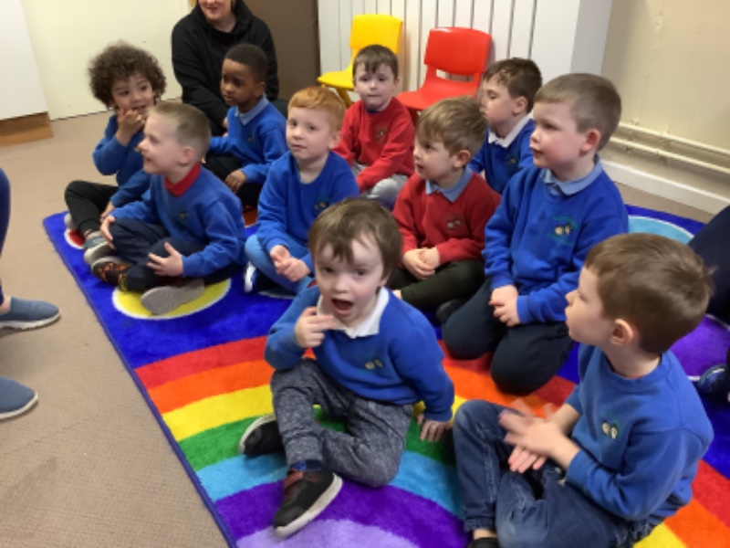 Nursery 2 had so much fun with Nursery 1 and Sarah from Debutots as we used our imaginations to "jump in" to her story about a very ugly caterpillar named Clara.