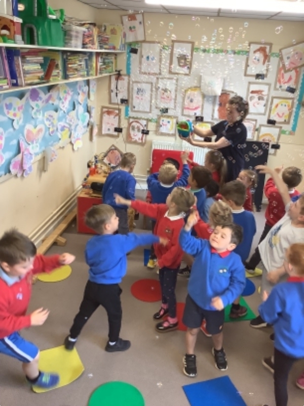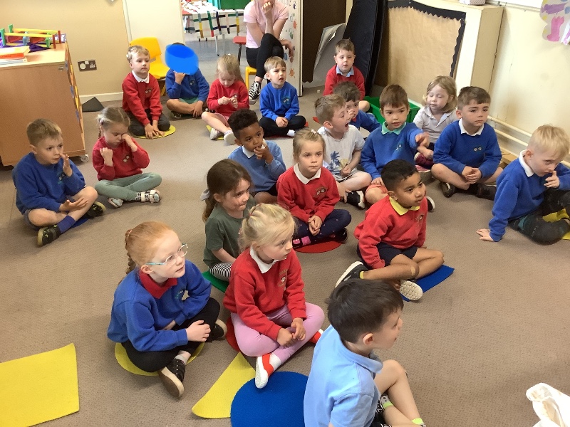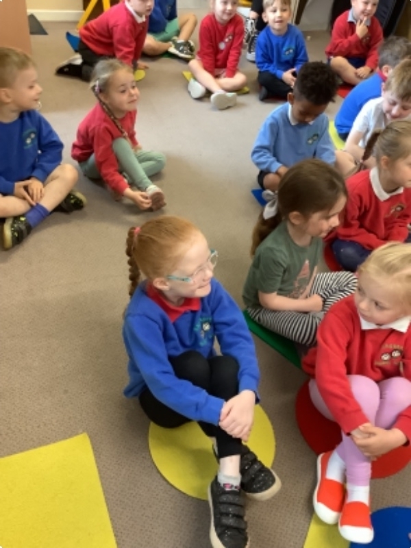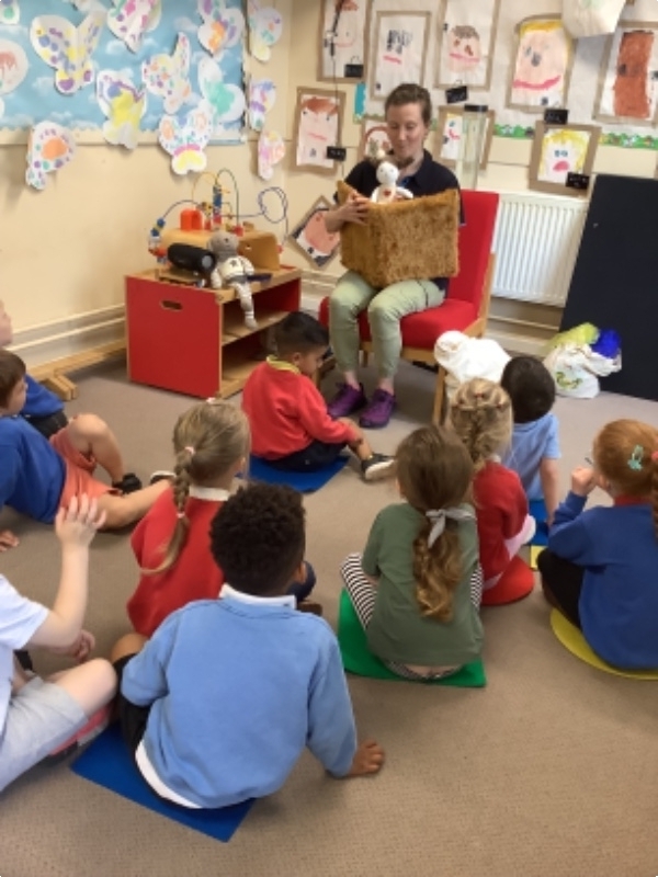 Today we had Annie from Debutots in. She read us a lovely story about starting 'big school'. Can you believe we are almost finished up in nursery!