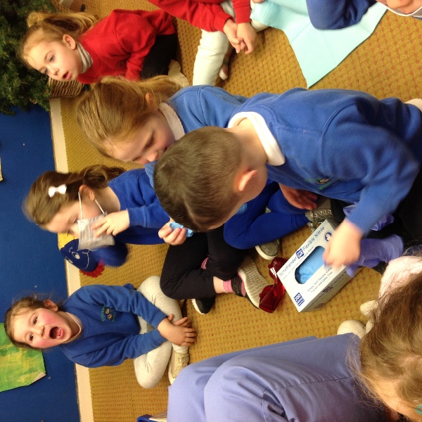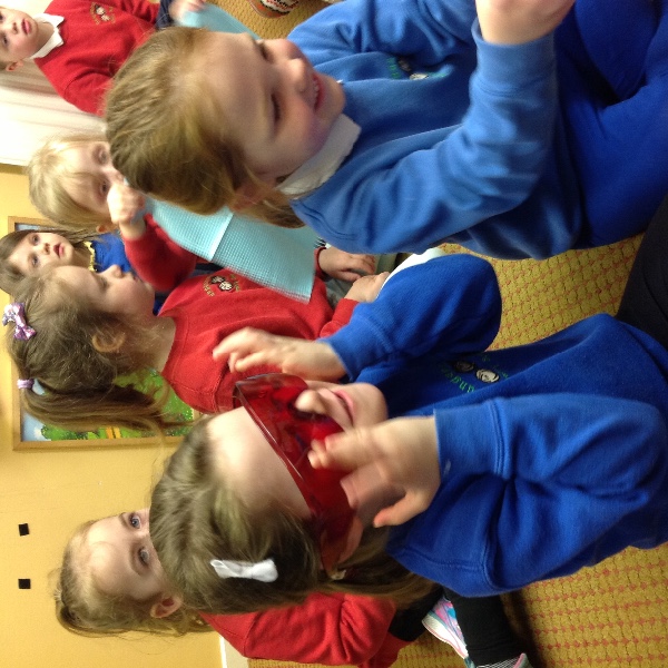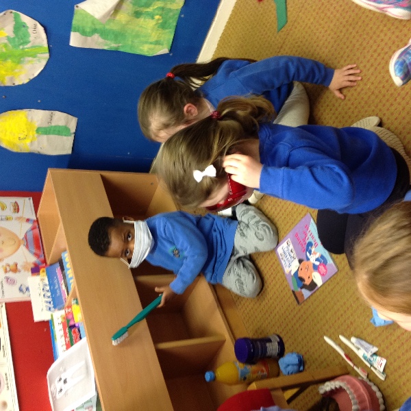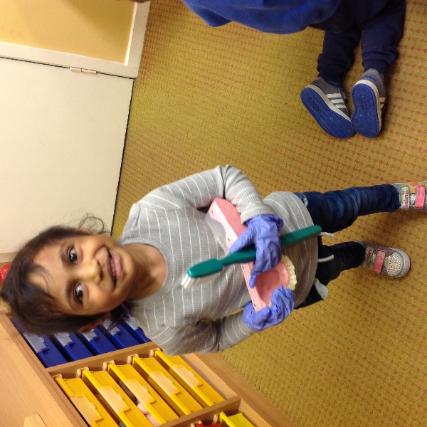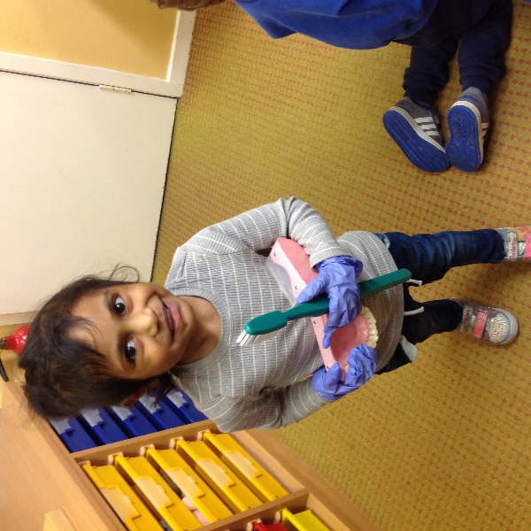Isabella's mum is a dentist and on Thursday she came along to visit us all in Nursery. She showed us how to brush our teeth and helped us to think about foods that are healthy and unhealthy for our teeth.