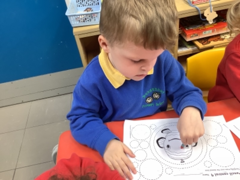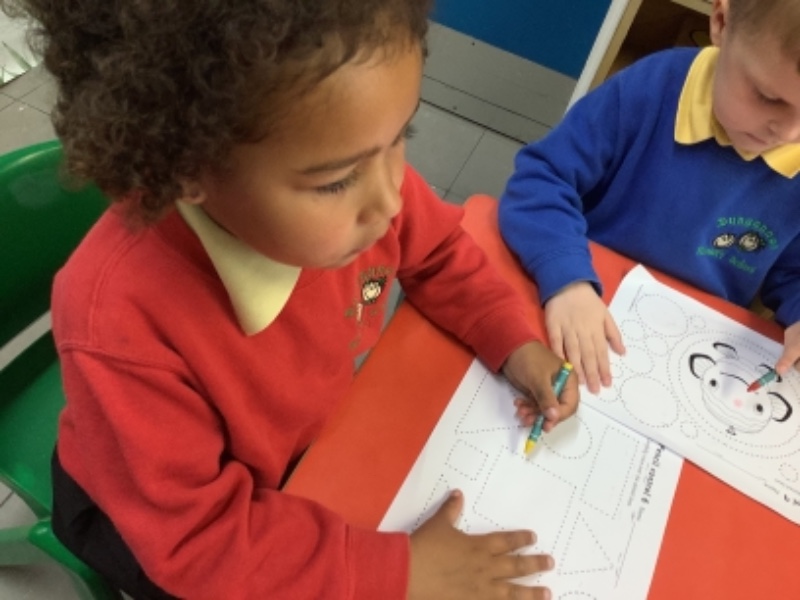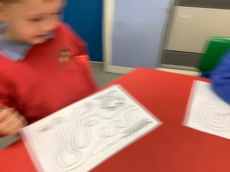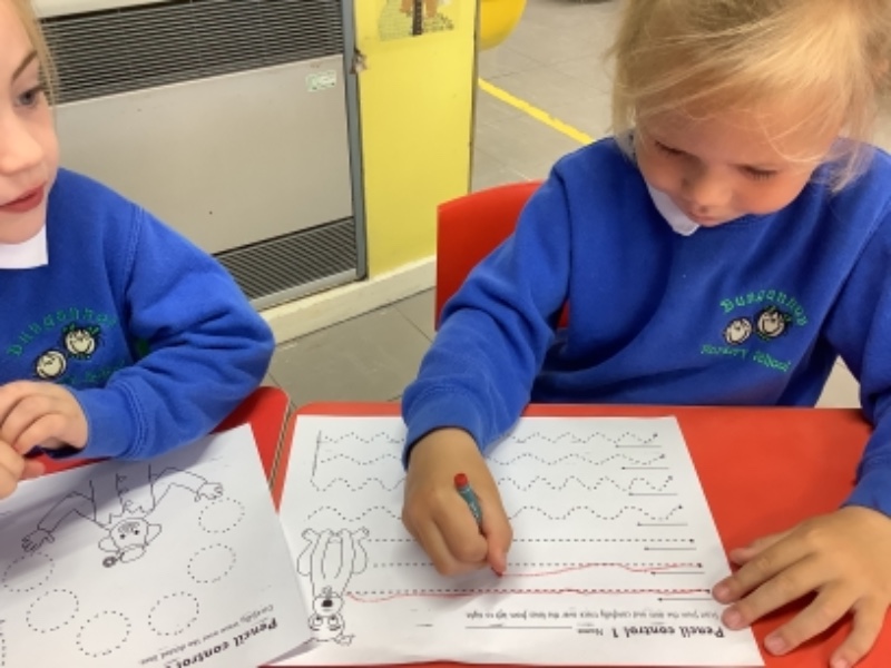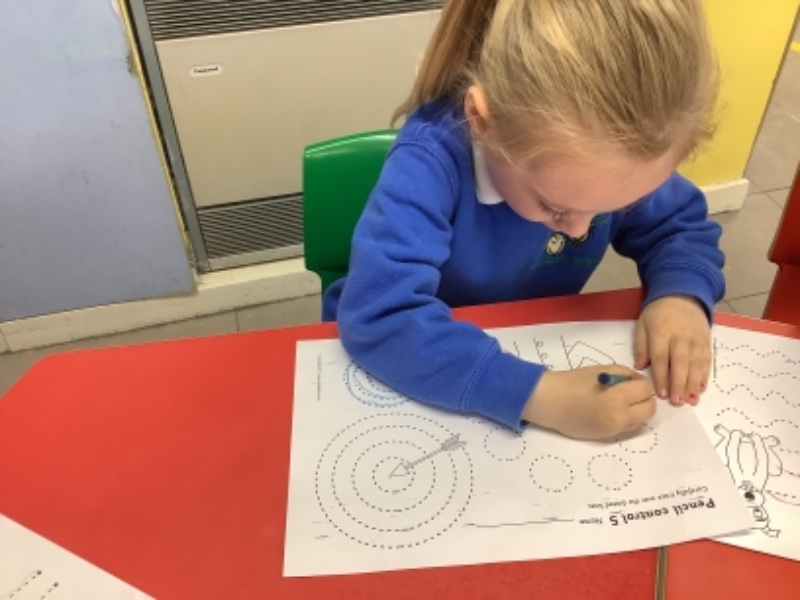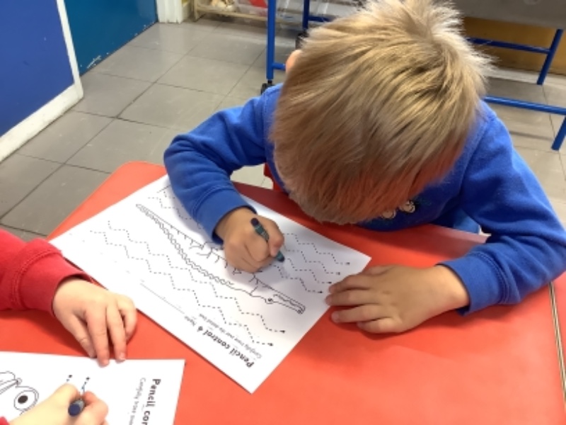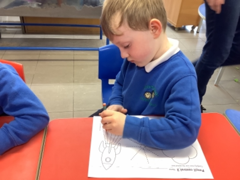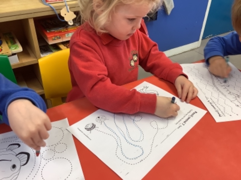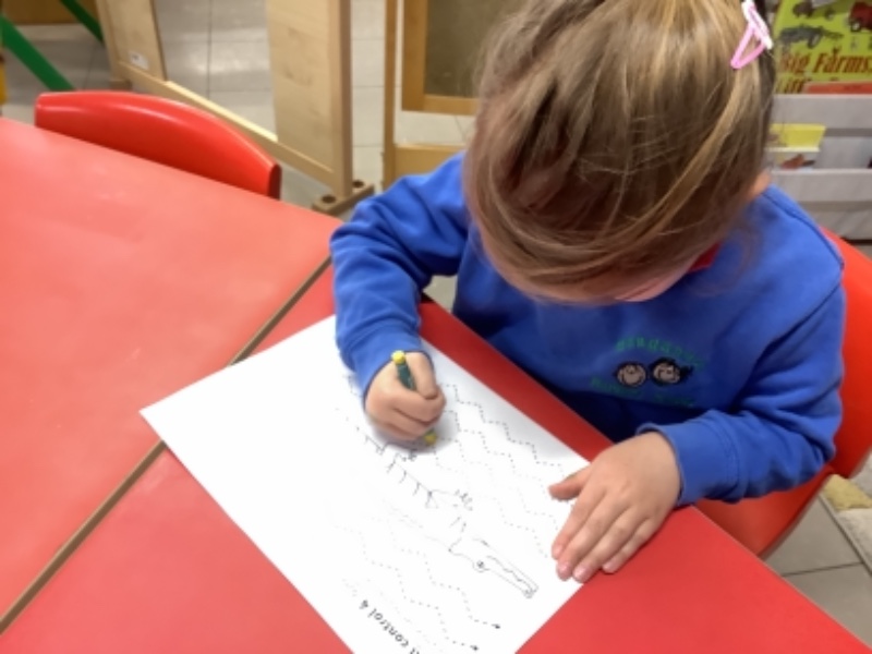 The children are practising their pencil grip. Everyday the children scribble, draw and pretend to write. When they start P.1 in September they will be learning how to write letters and numbers. Let's help those finger and hand muscles get ready!