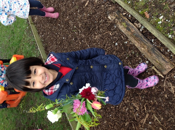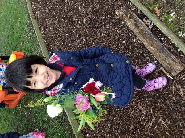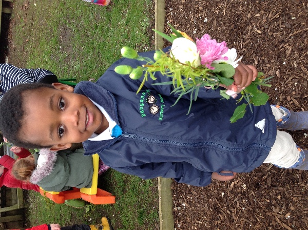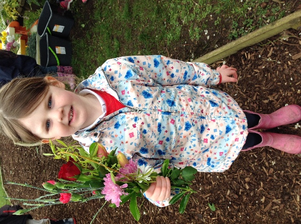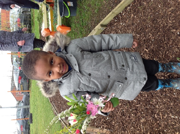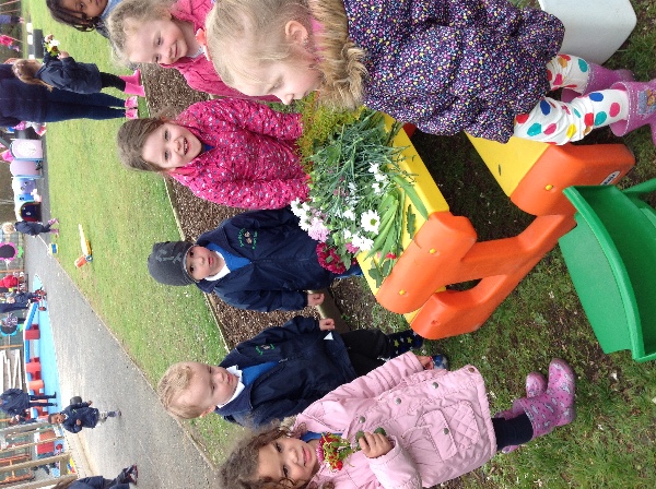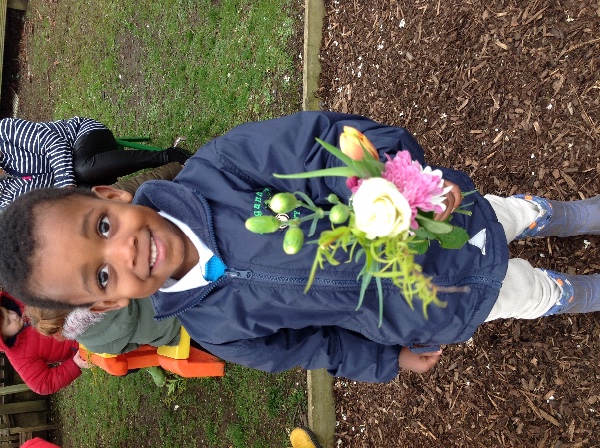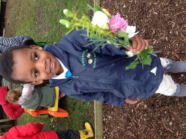 As part of our theme People Who Help Us and for our Mother's Day Celebrations the nursery children created their own little bouquets of flowers during outdoor play to give to their mums.