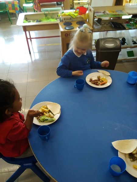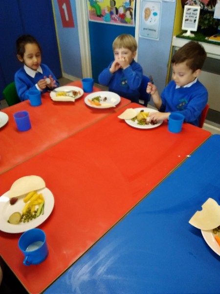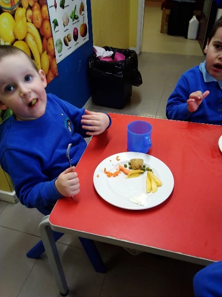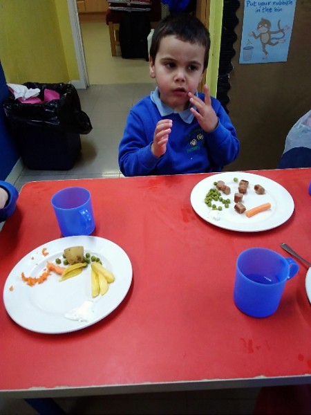 The children in Nursery all really love their dinner.