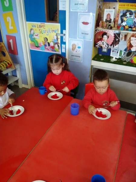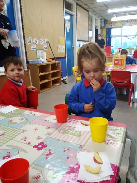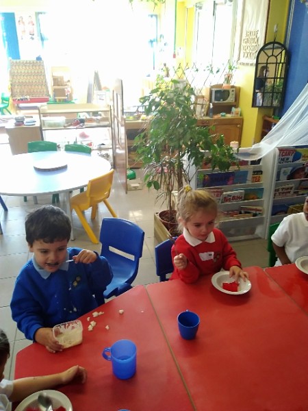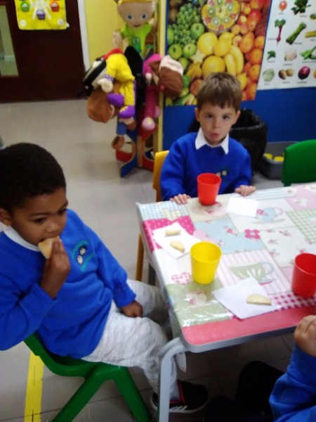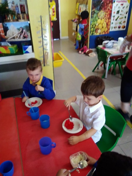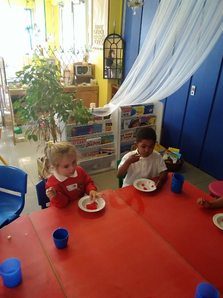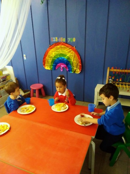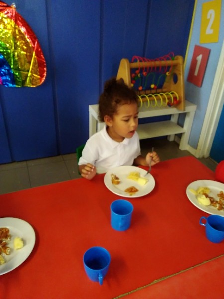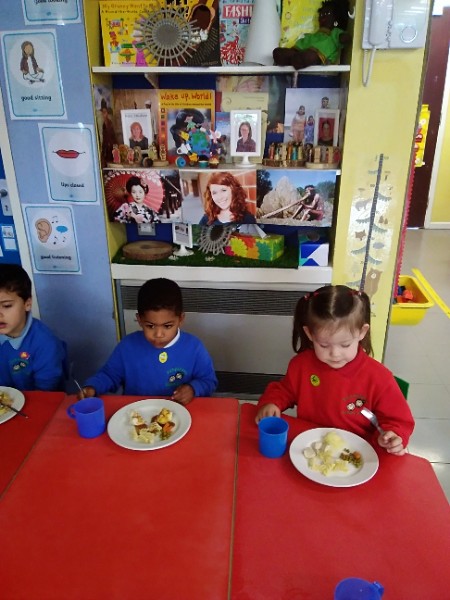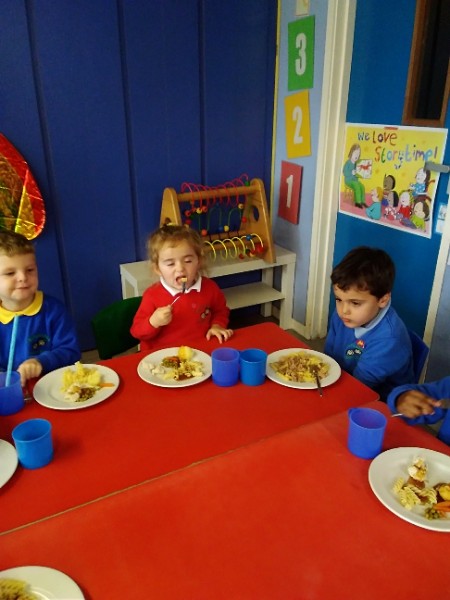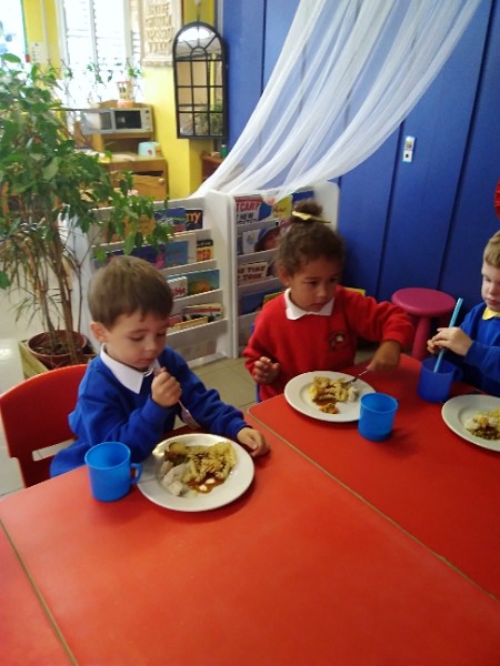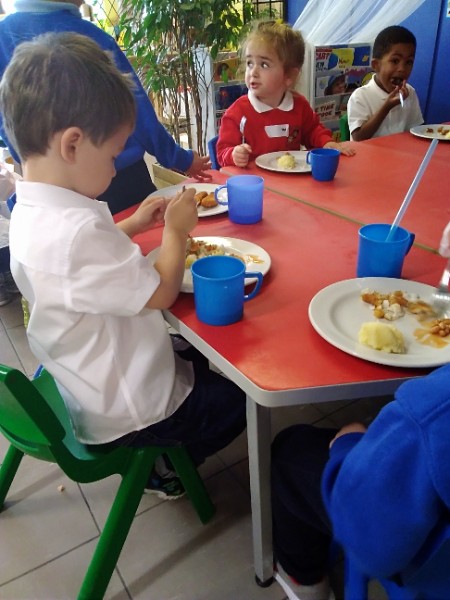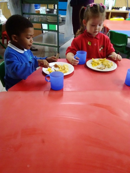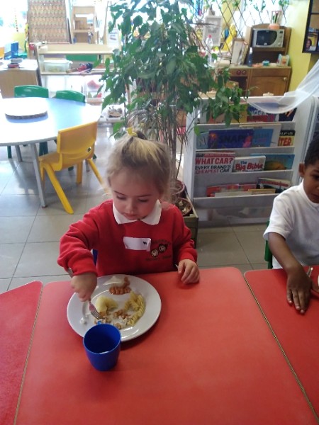 The children in Mrs. Hudson's Class are enjoying their Snack and Dinner.