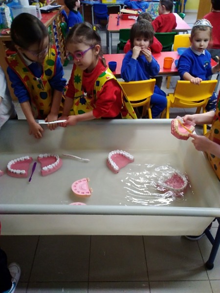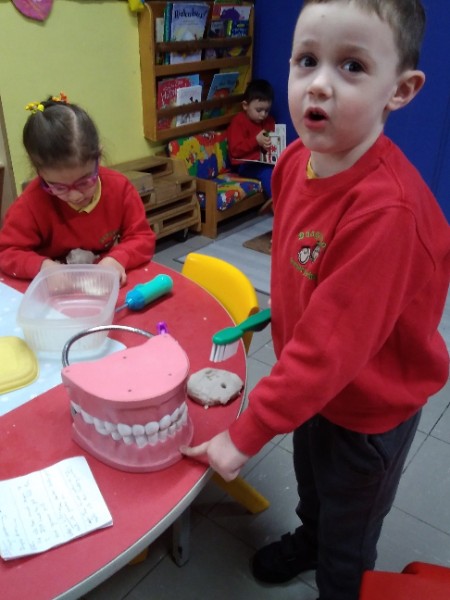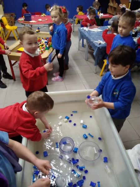 We have been learning to wash our hands and care for our teeth. We also learned how to care for sick animals at the vets. Some children made lovely patterns with the cubes and beads.