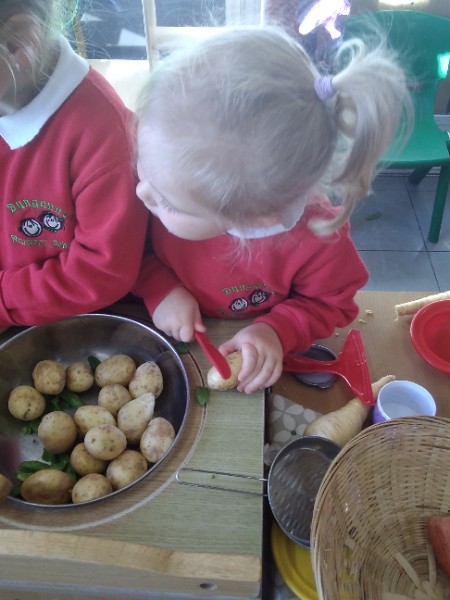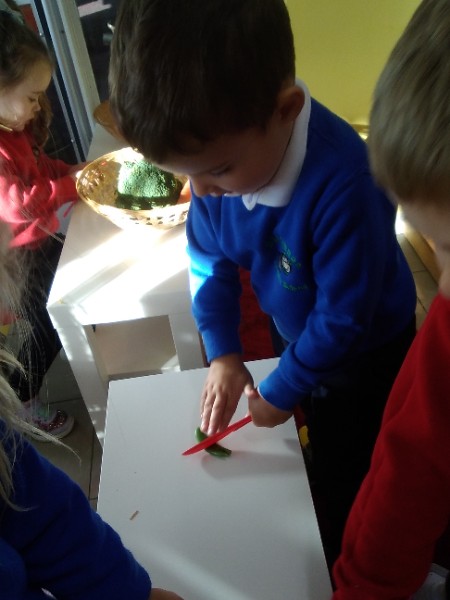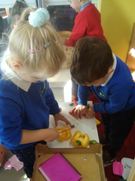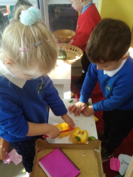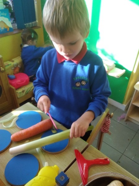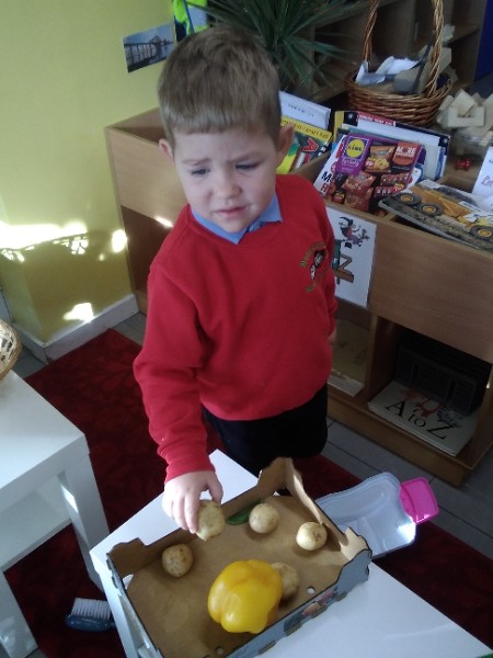 Mrs. Hudson's Class have been busy at the Farm Shop this week. Lots of fruit and vegatables to learn about. Colours, sizes, shapes, weight and much more. The children enjoyed chopping and cutting them too.