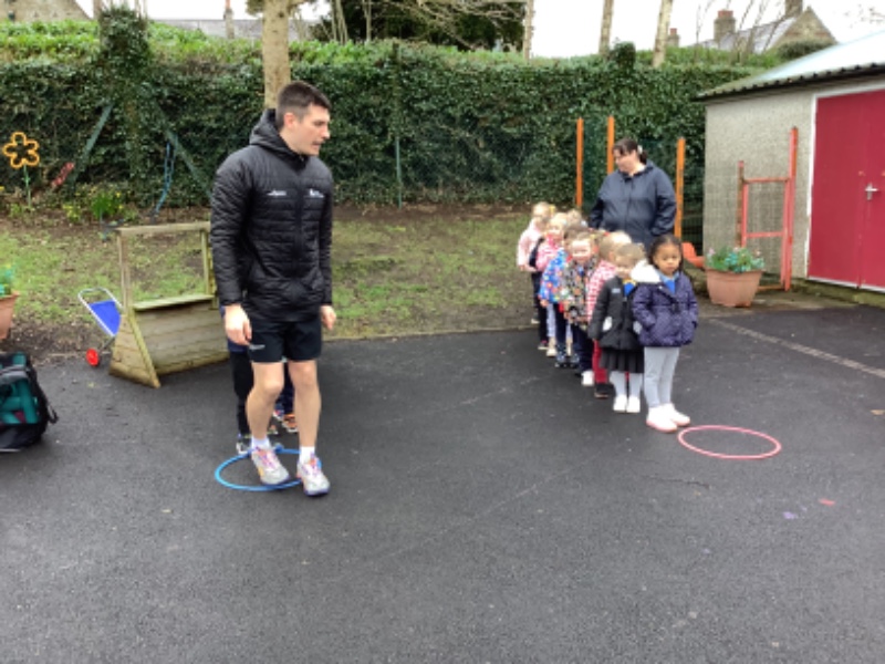 Mrs Lagans class had so much fun again with Ronan from fit minds. We were focusing on our fantastic jumping skills and were so clever in naming different animals that jumped. We hopped like bunny's, jumped over floats like horses in a steeple chase and leapt like frogs on lillipads.