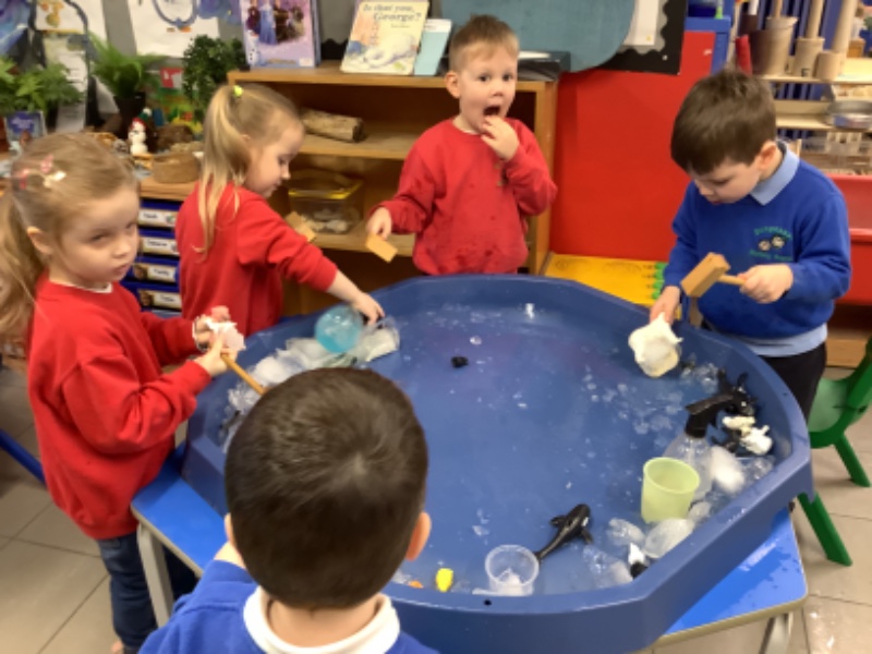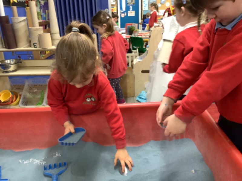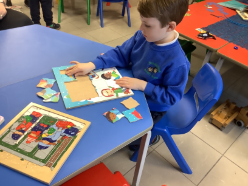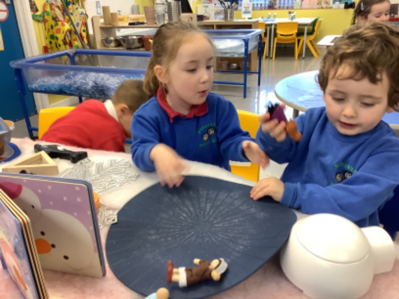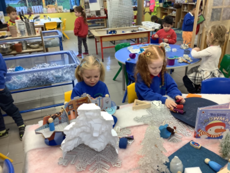 Each Friday during January Mrs. Lagan's and Mrs. Hudson's classes will join together as one class as both classrooms become 'open plan'. The children from both classes already play together during outside play every day. The children enjoyed playing together and eachother's classrooms.