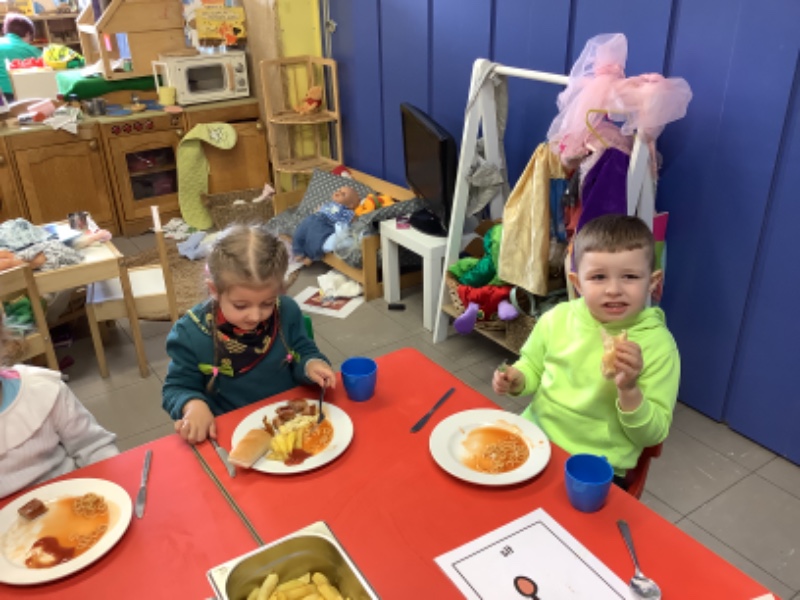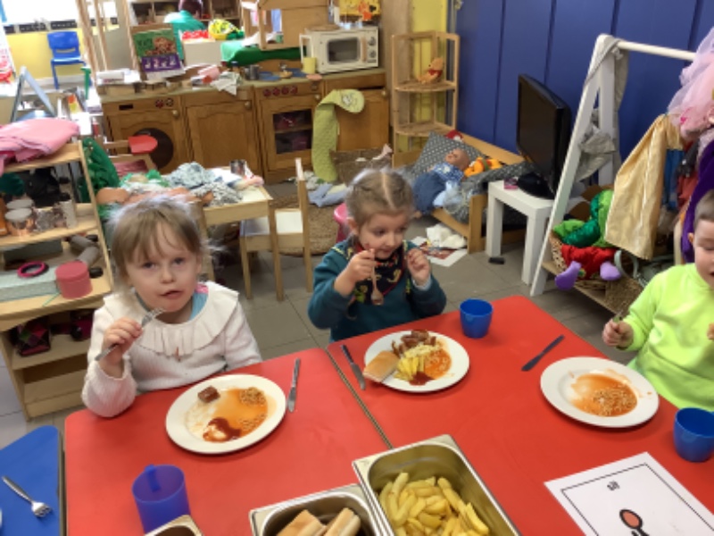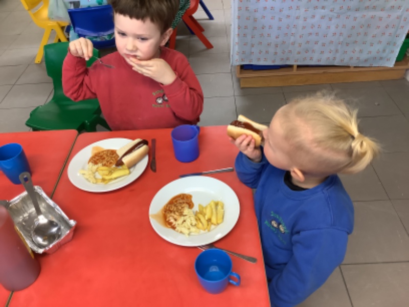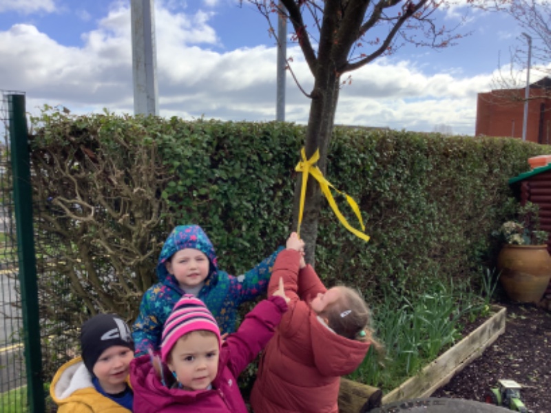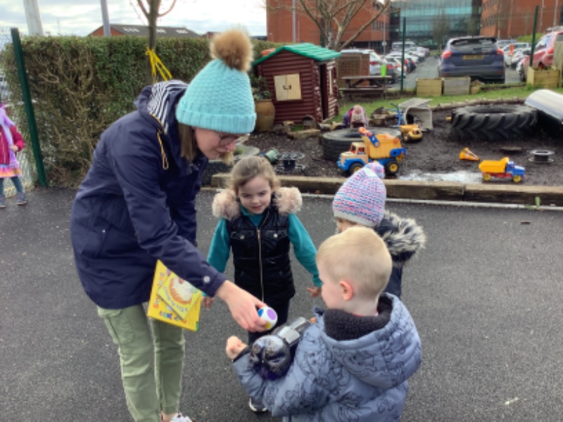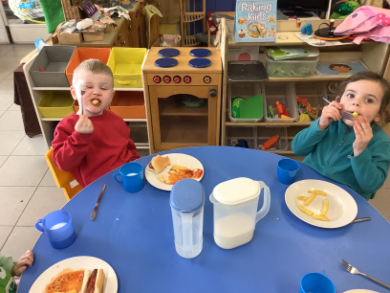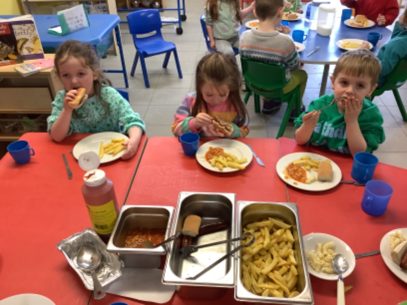We all enjoyed dressing up in green and rainbows to celebrate St. Patrick's Day. We made shamrocks, had a green snack of grapes, cucumbers, apples and golden Milky Bar mousse. We had a rainbow treasure hunt with Miss Park and Mrs. Lagan. We made rainbow biscuits too!