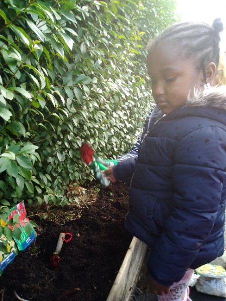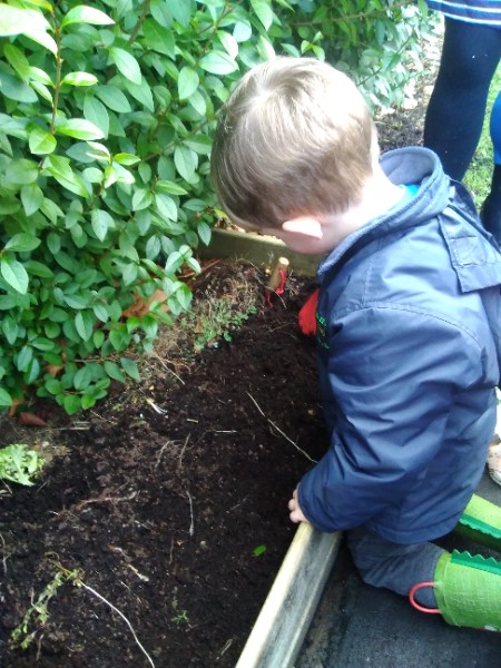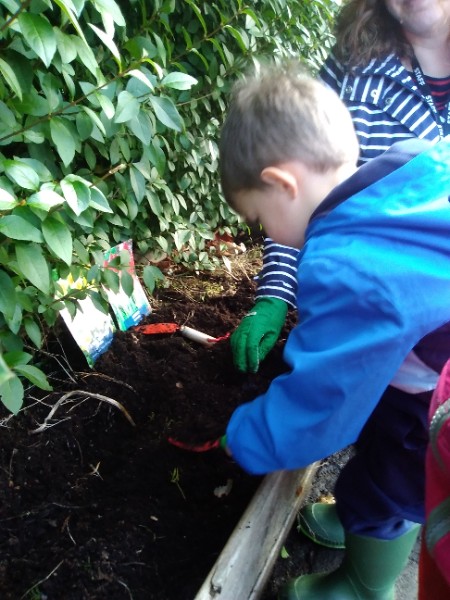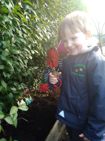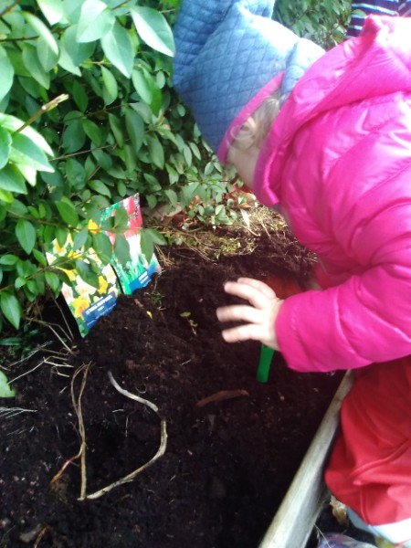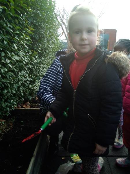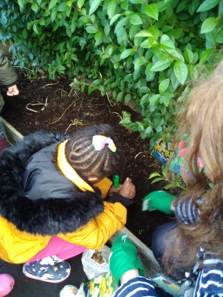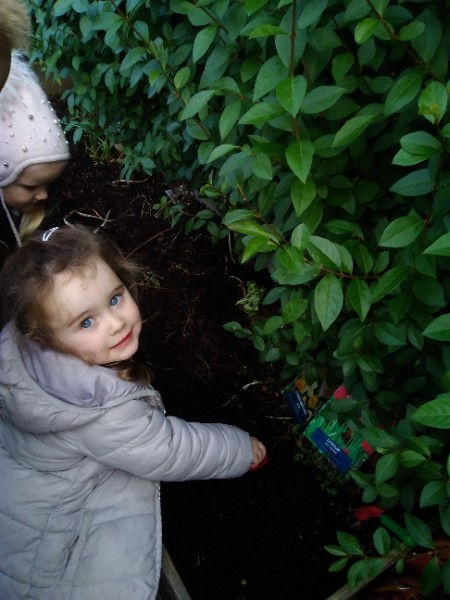Mrs. Hudson's children have been busy in the garden this week during outdoor play. The children have planted their spring bulbs in their class flowerbed. The children choose a yellow daffodil or a red tulip to plant. We will look after them and water them. We are looking forward to Spring time when they will bloom.