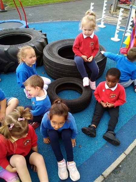 The children are getting ready for Sport's Day. They are looking forward to having lots of fun.