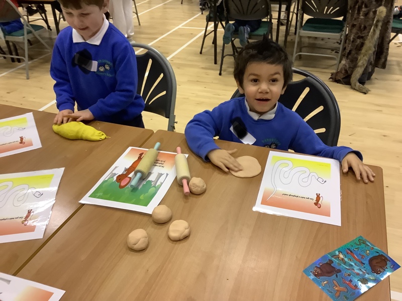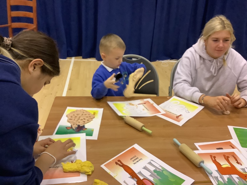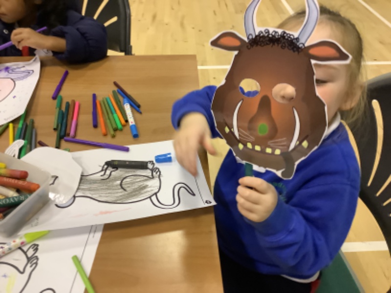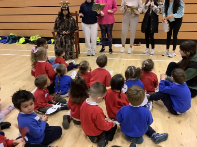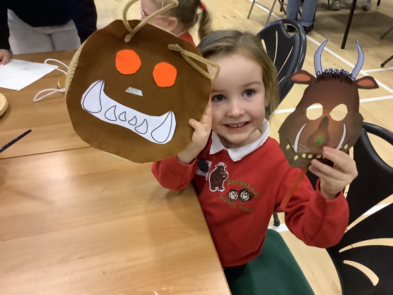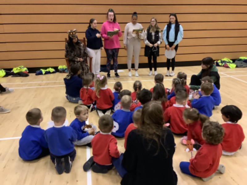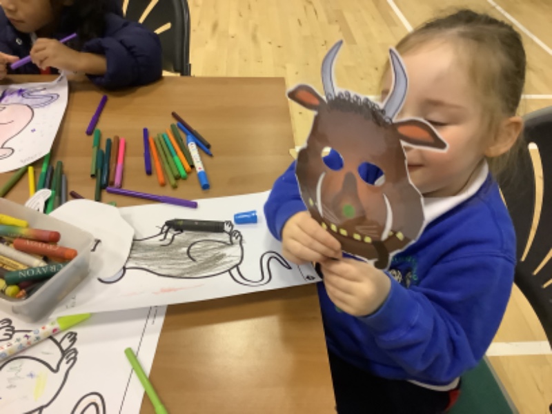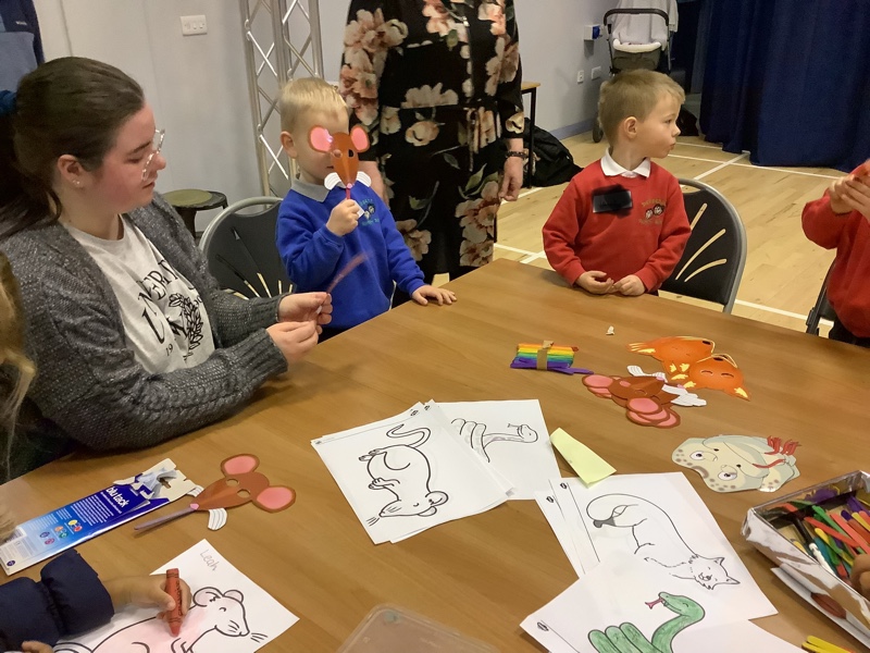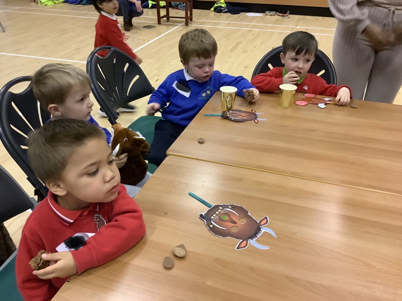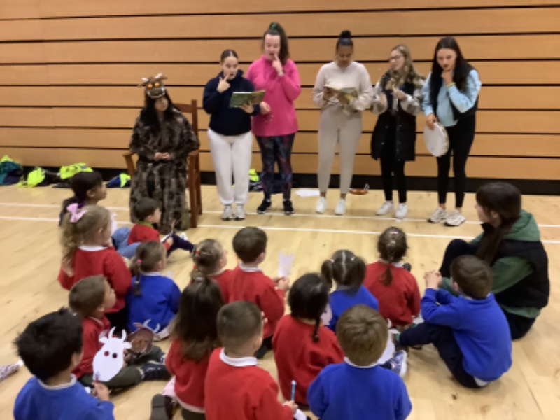Mrs. Hudson's class visited the Childcare students at the South West College for a Gruffalo themed play session.