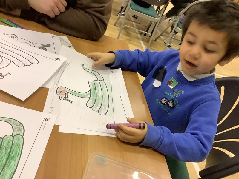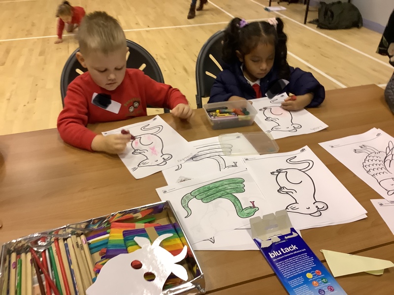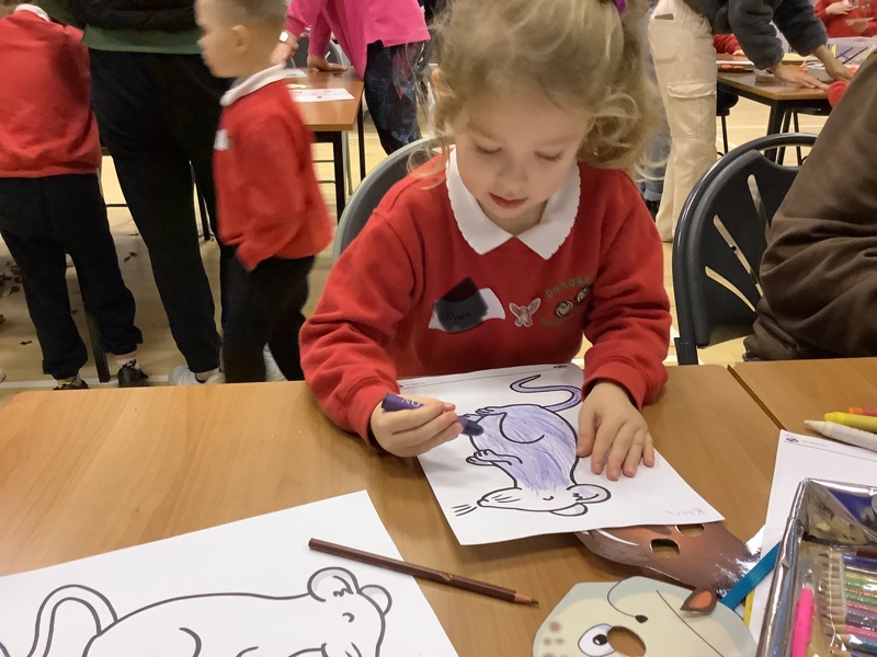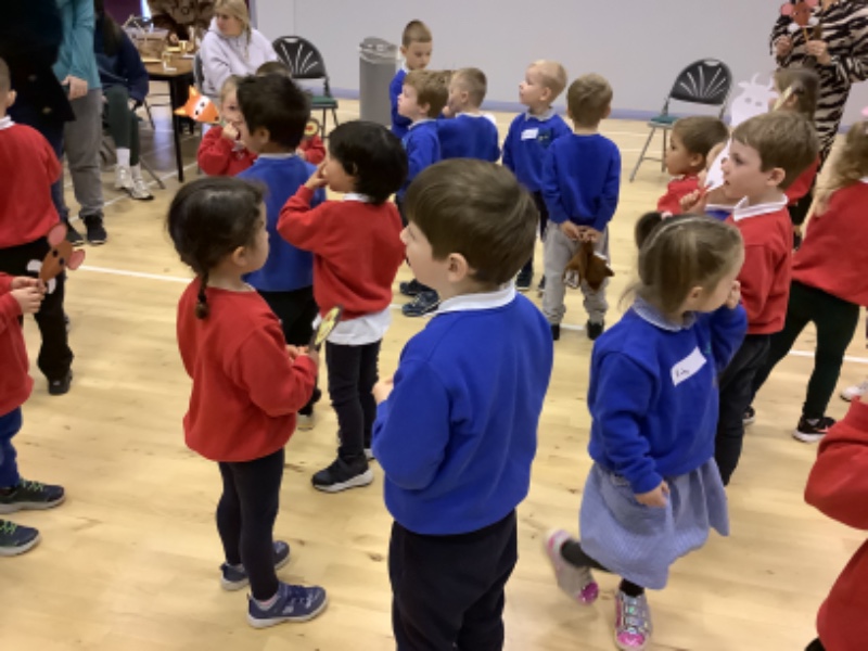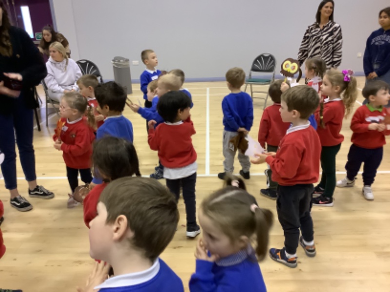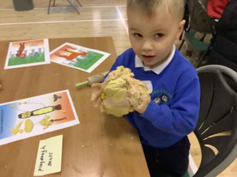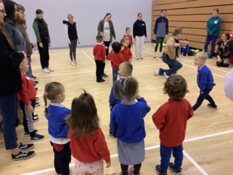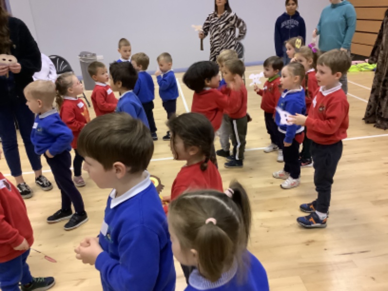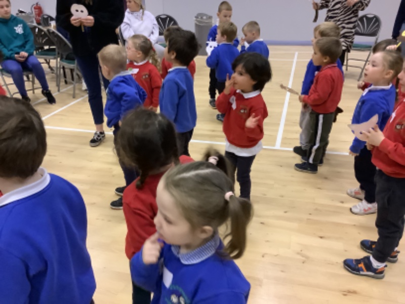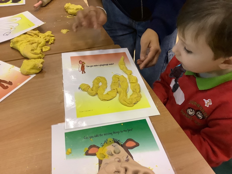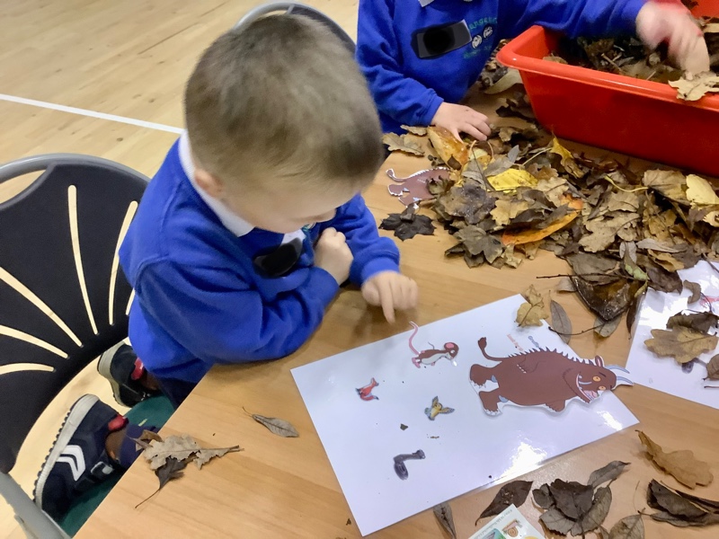 Mrs. Hudson's class visited the Childcare students at the South West College for a Gruffalo themed play session.