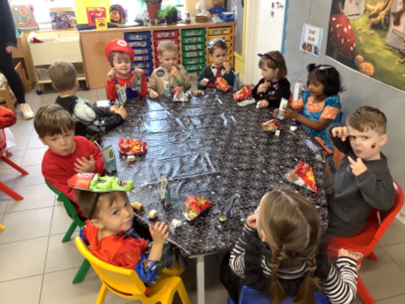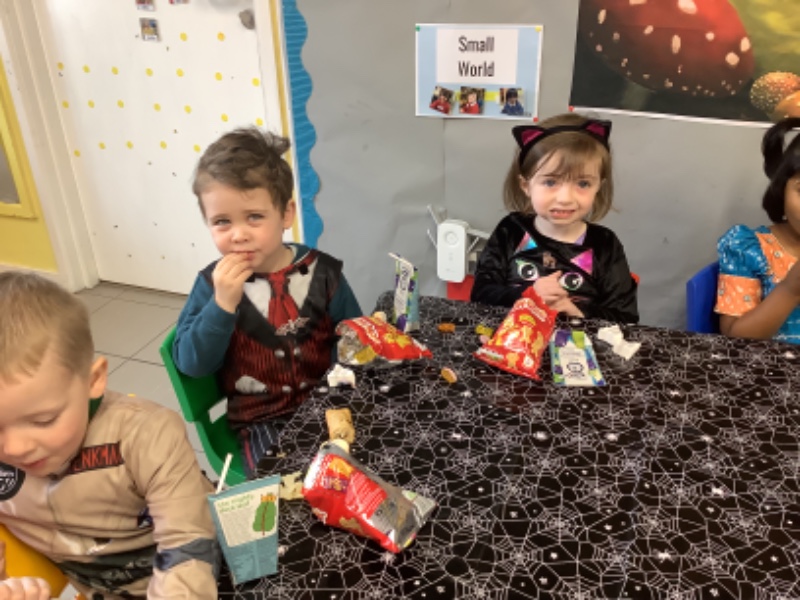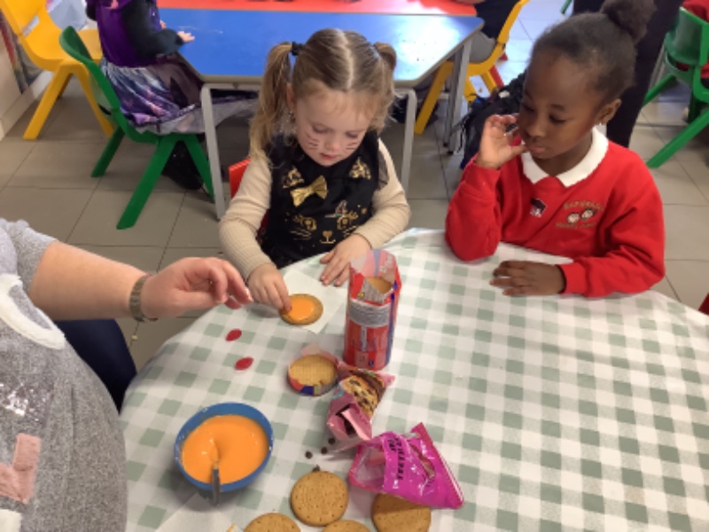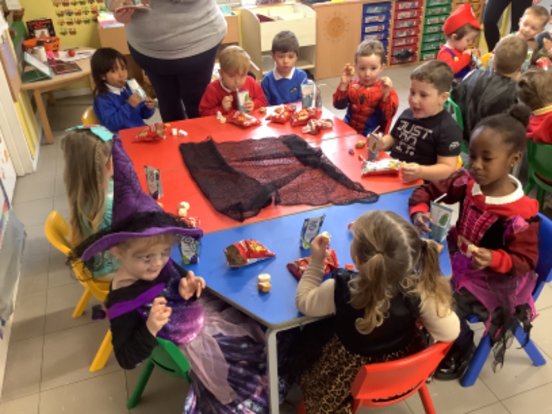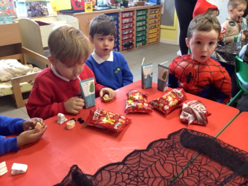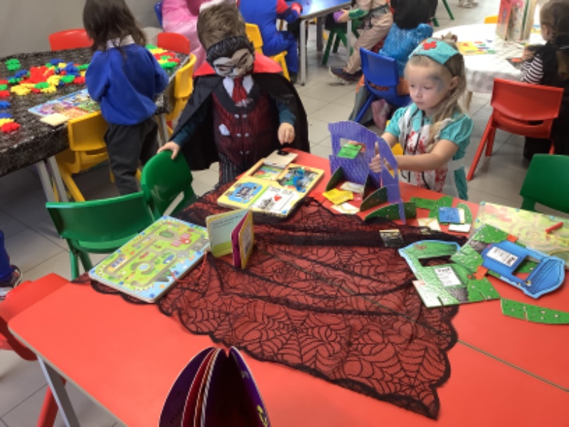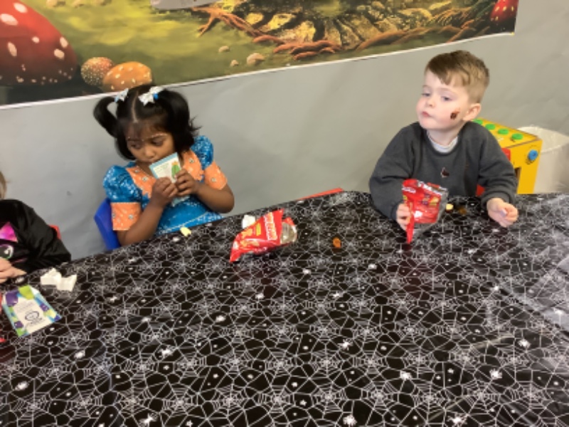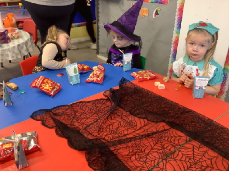 We decorated spooky biscuits, had a parade in our costumes, and danced the day away in our story room.
