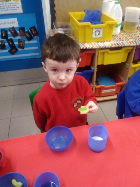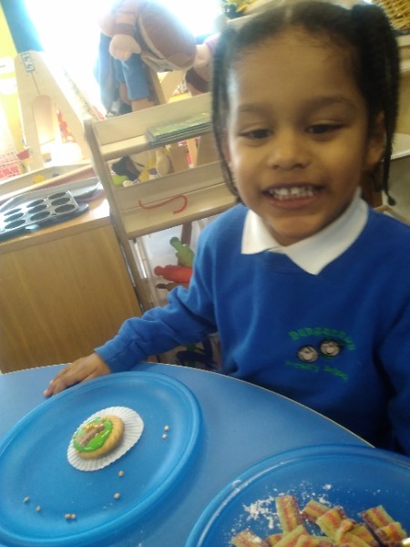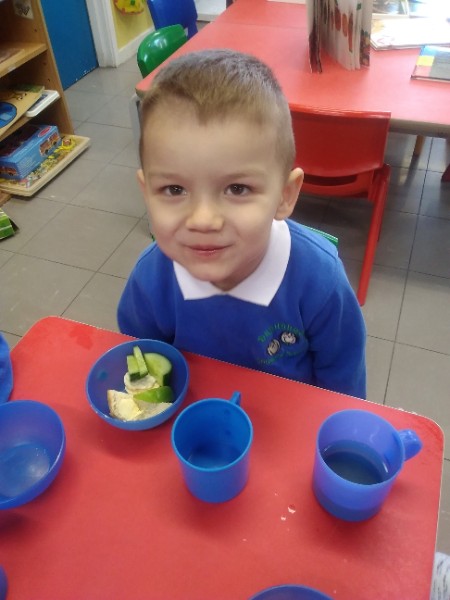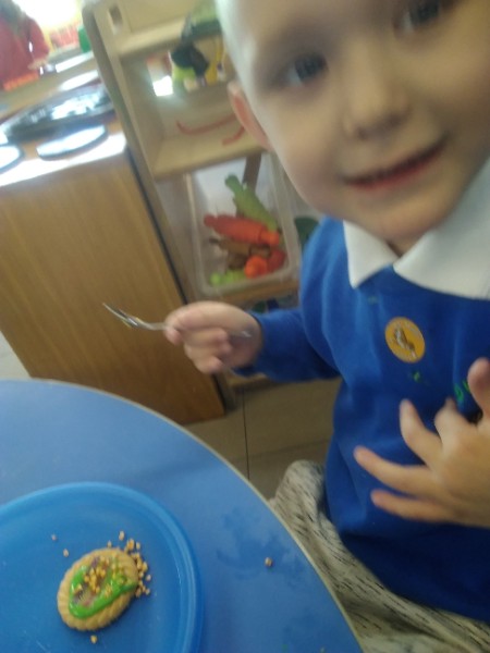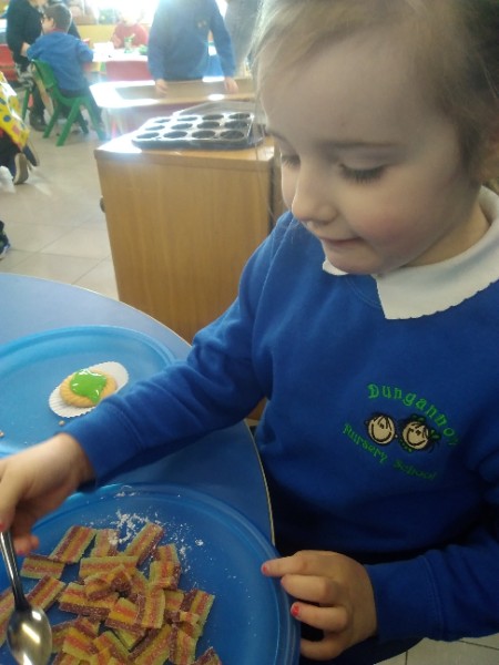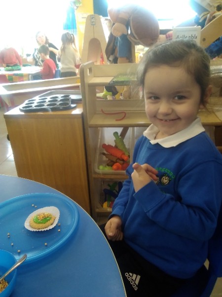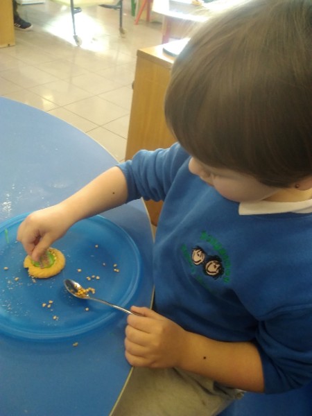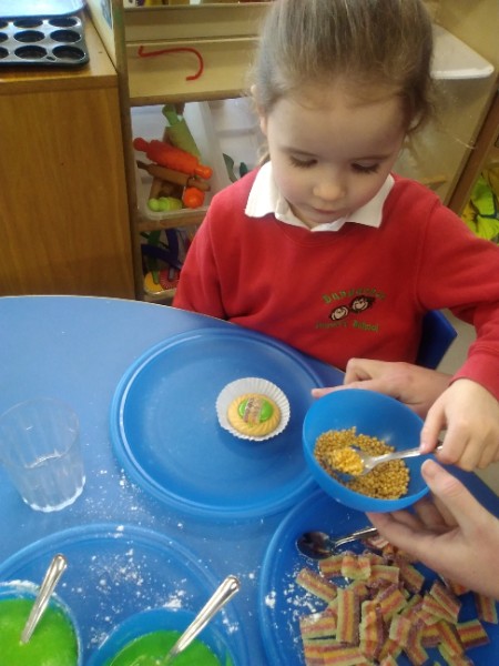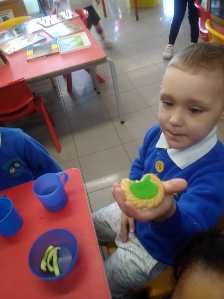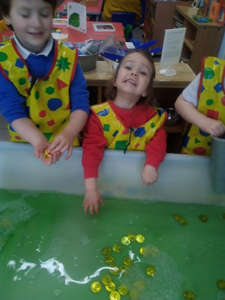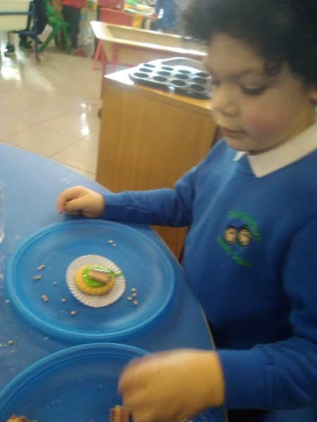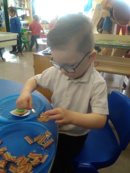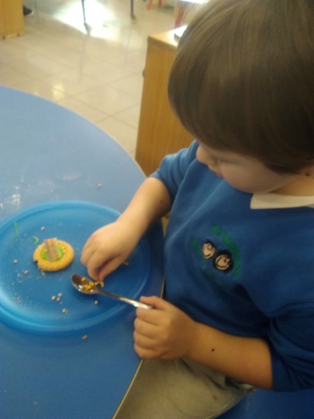 The Nursery children celebrated St. Patrick's Day on Friday. We looked for the Leprechaun's gold at the end of the rainbow. We made rainbow biscuits with sugar gold. We also made some green shamrock pictures too. We enjoyed a Green Snack of apple, pear, cucumber, green biscuits and apple juice.