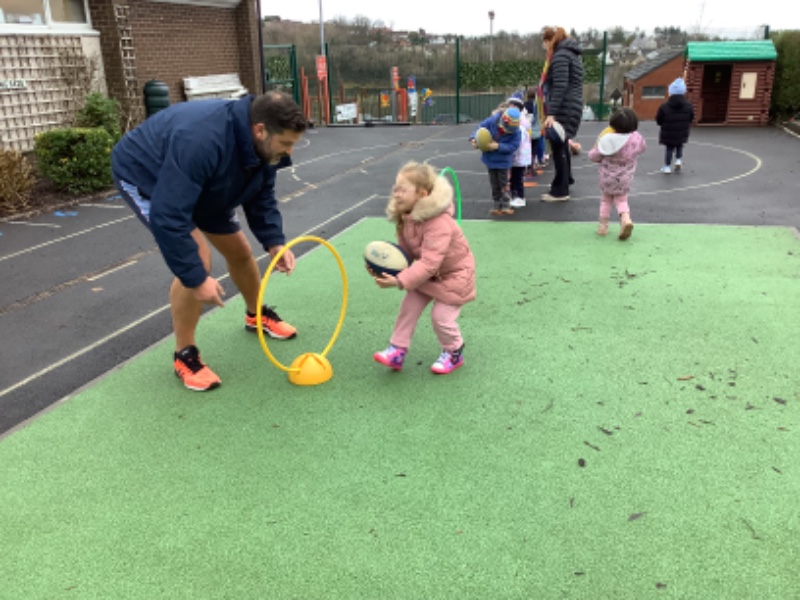 The children enjoyed our last session with Kidzwellness this term where we learnt all about our emotions and the importance of well being. This coincided very well with our fun filled,action packed sessions with Justin from rugby tots where we are working hard on not only our ball skills but also our listening and turn taking. The boys and girls are participating in lots of lovely chat about the importance of being healthy and making healthier choices.