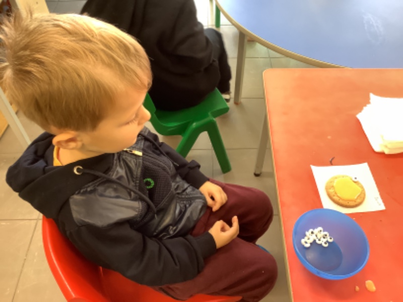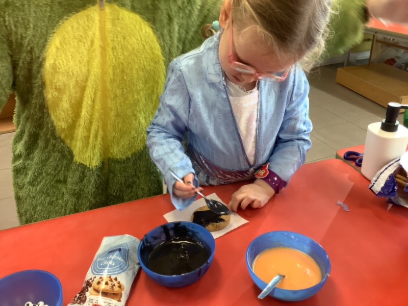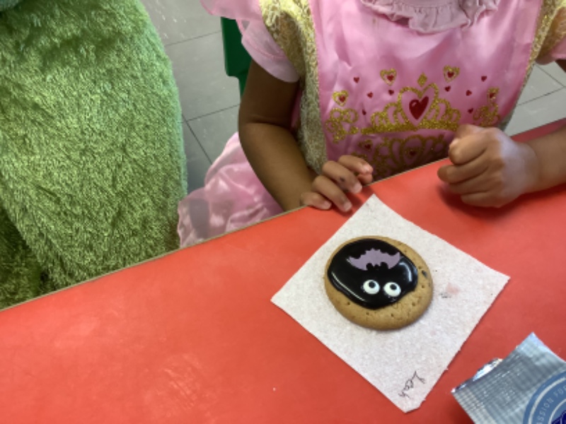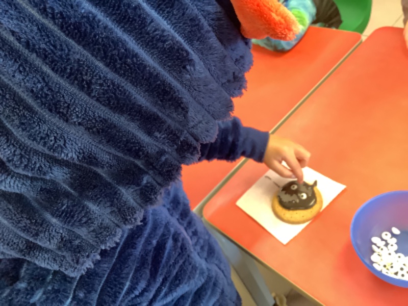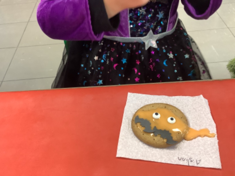 We made spooky bat biscuits and Halloween pumpkin biscuits to celebrate our October birthdays.
