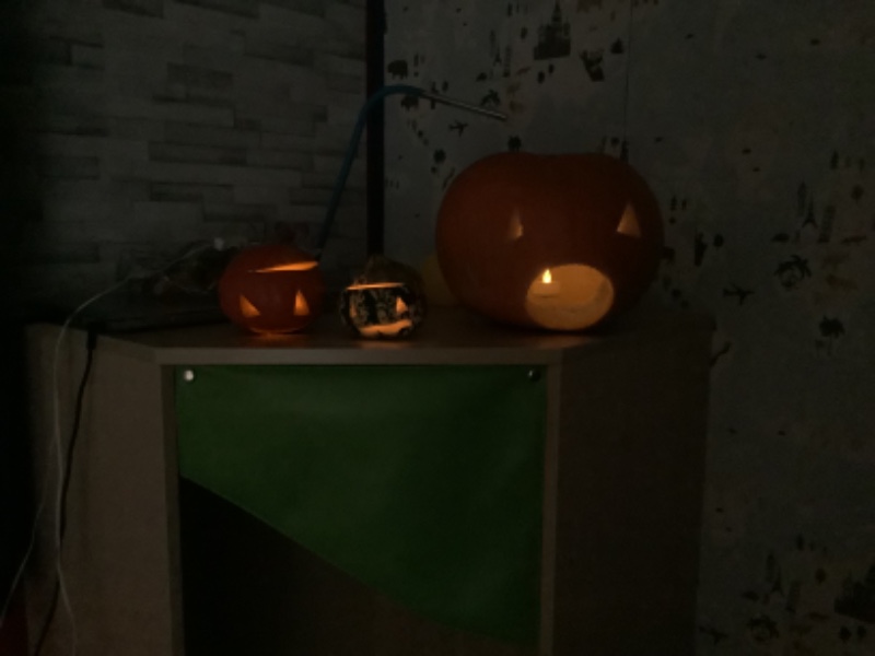 We carved our Halloween pumpkins and put them in the pumpkin patch and went on a pumpkin trail in the dark.
