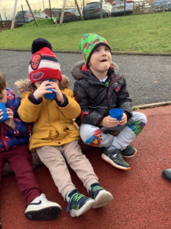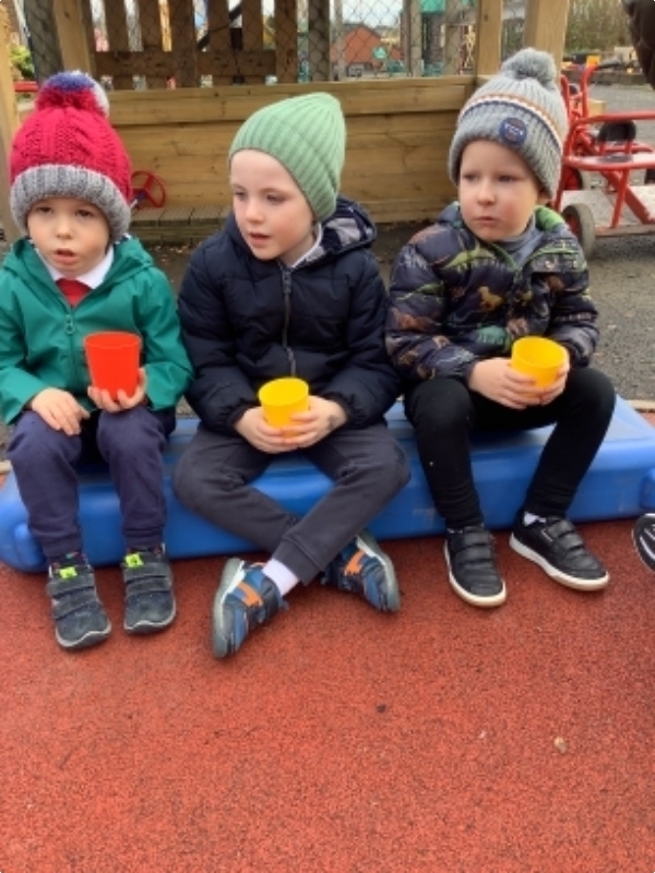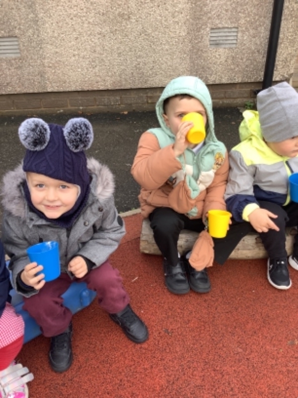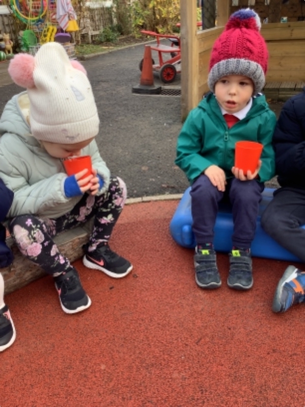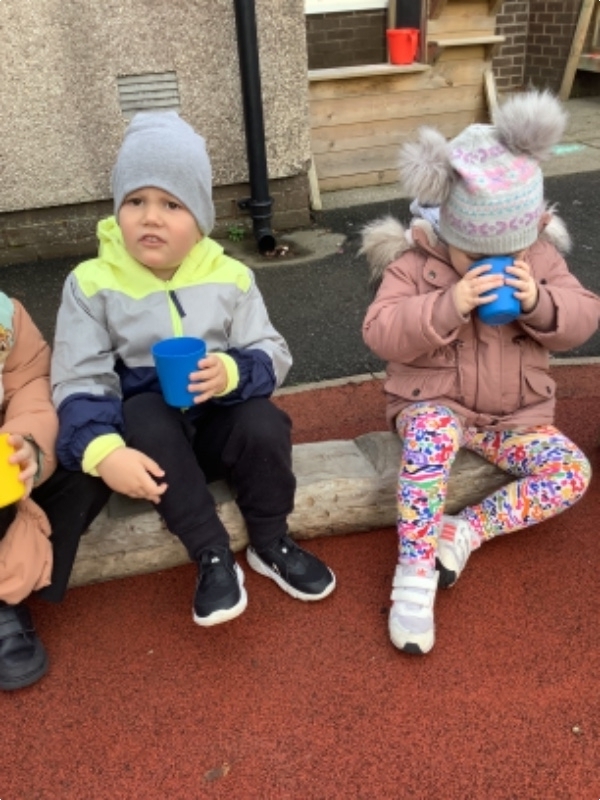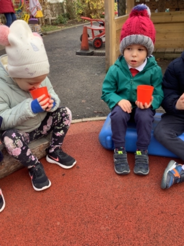 Some lovely hot chocolate, cream and marshmallows to keep us warm as we play and learn outdoors.