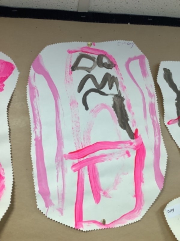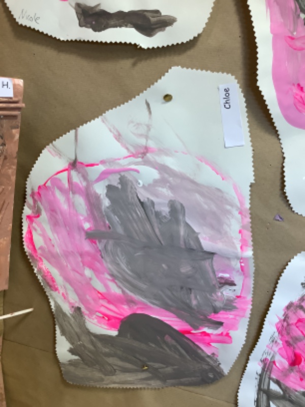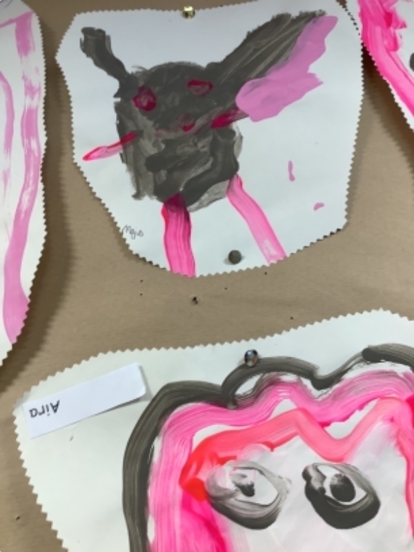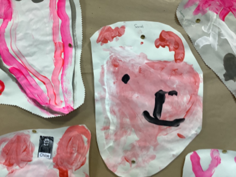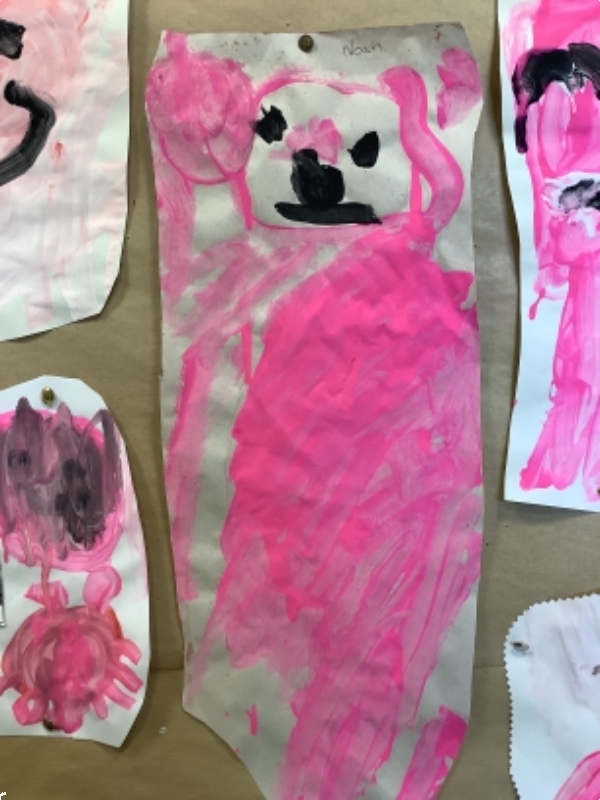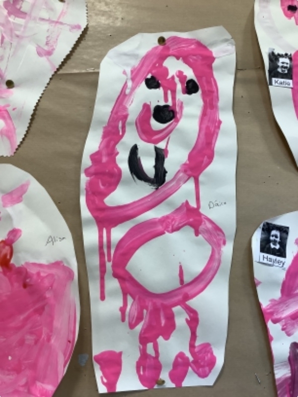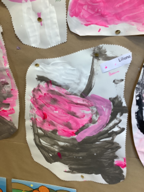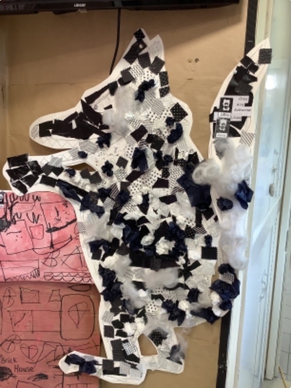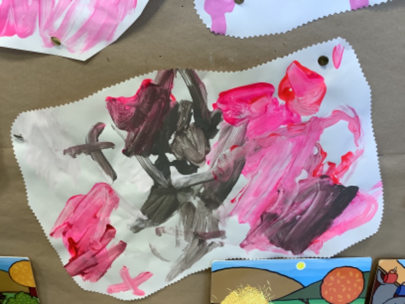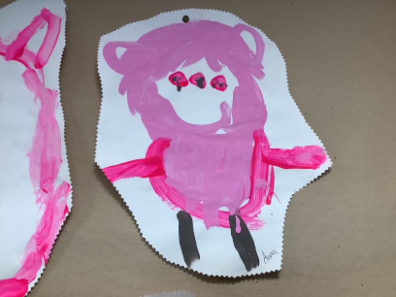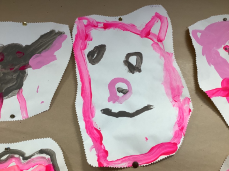 Look at our painting of the three little pigs and their houses and the big bad wolf.