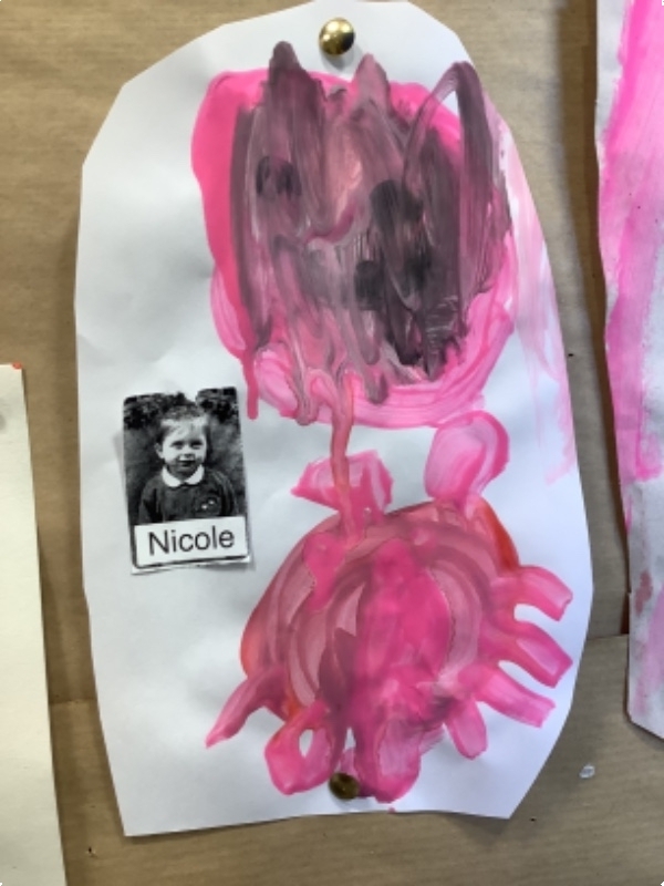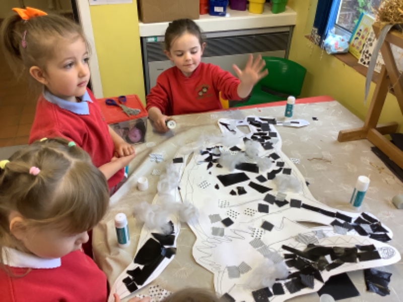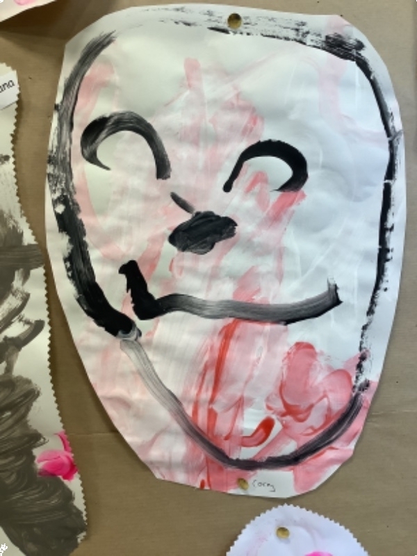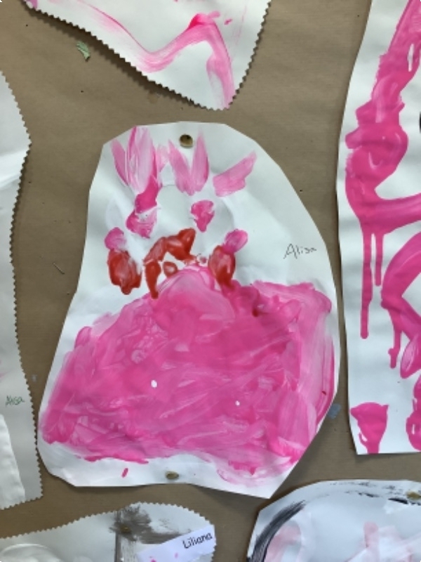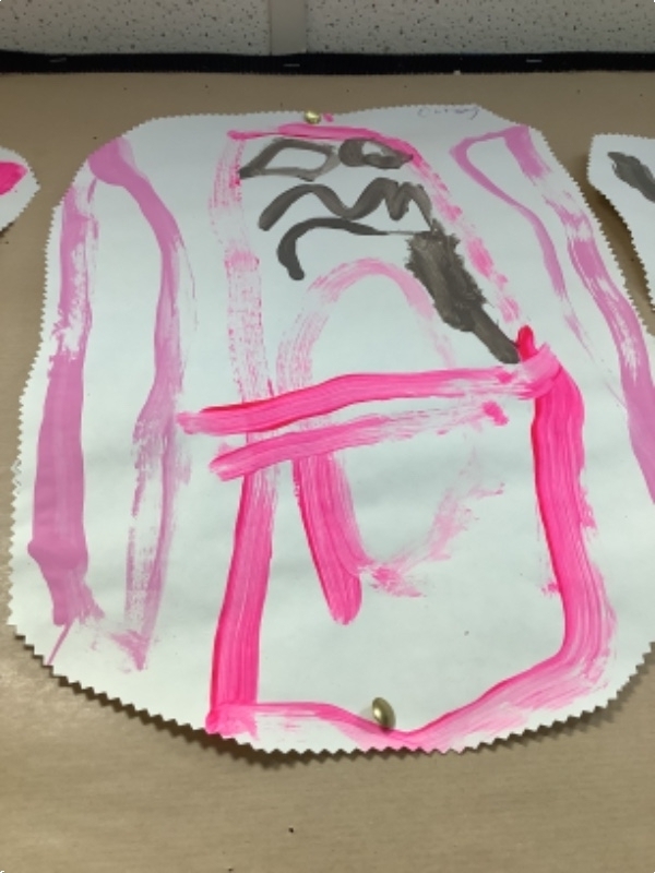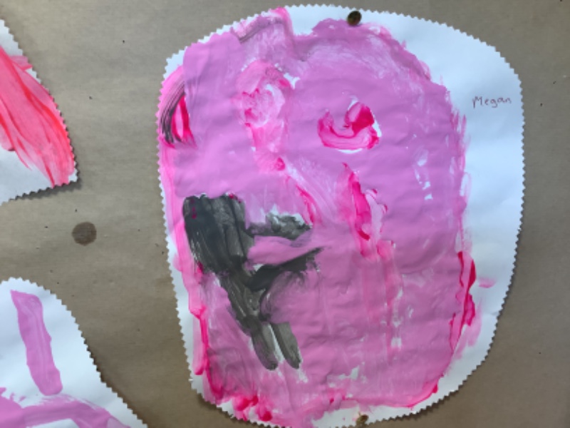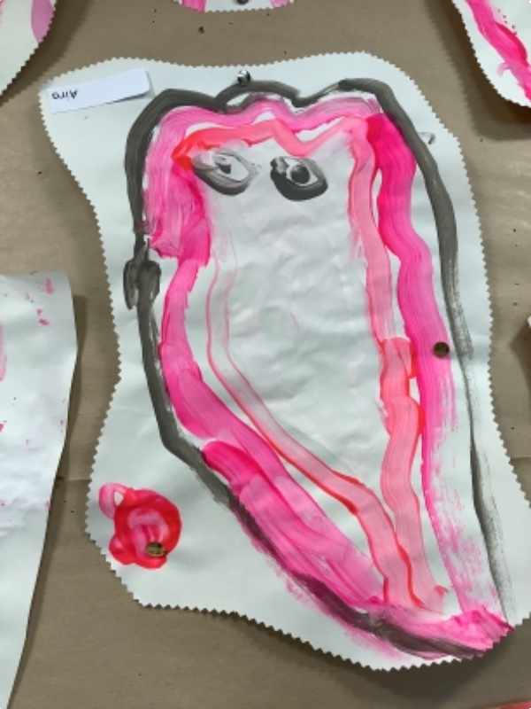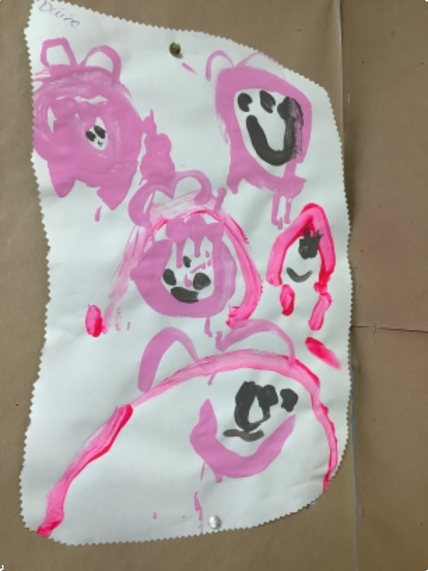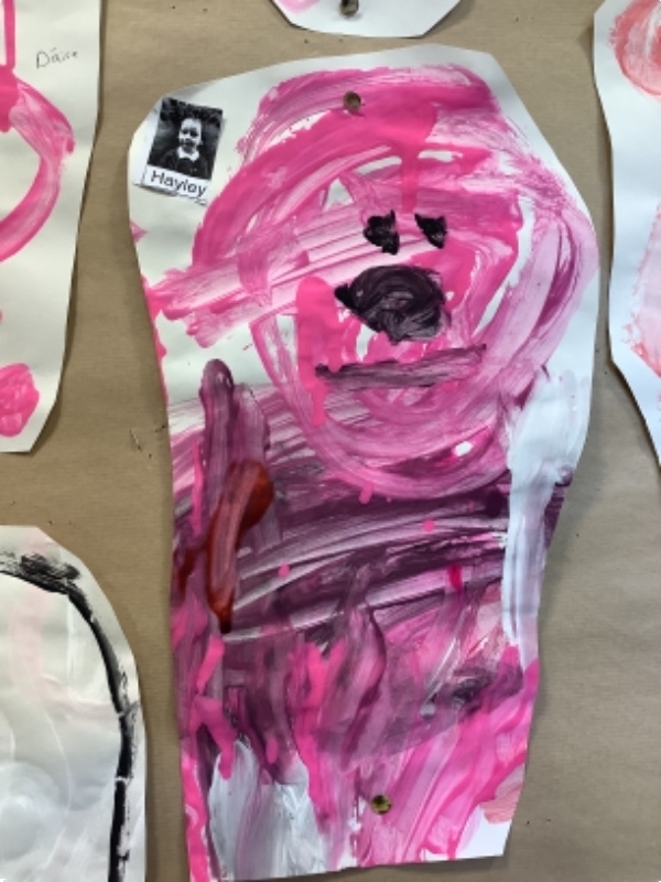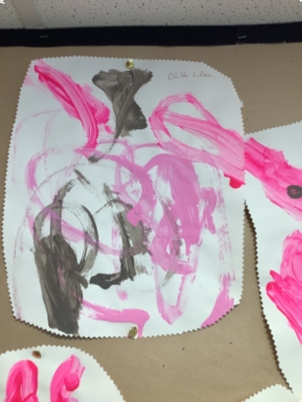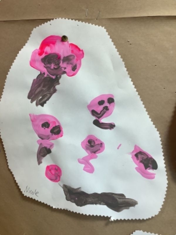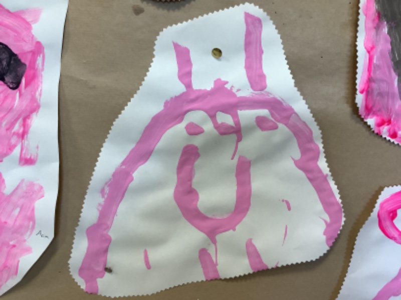 Look at our painting of the three little pigs and their houses and the big bad wolf.