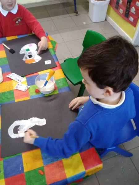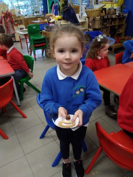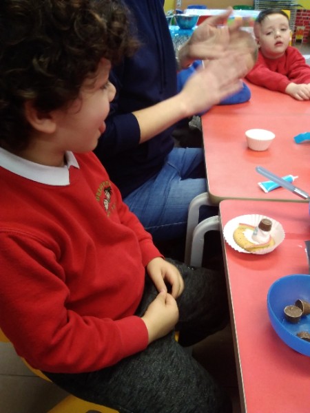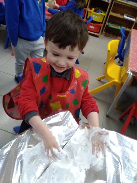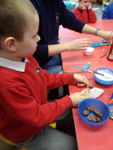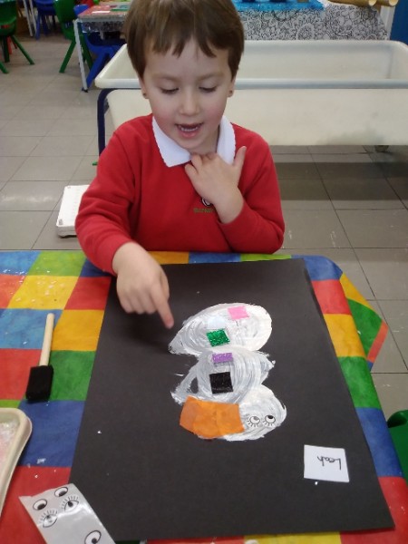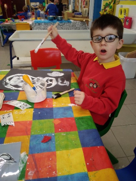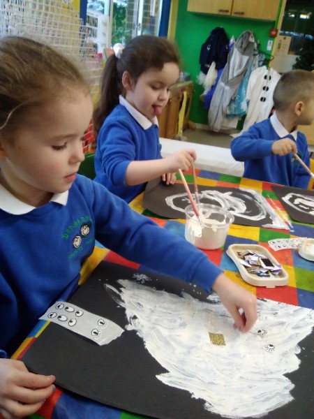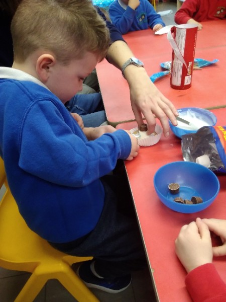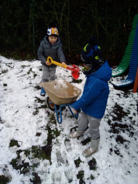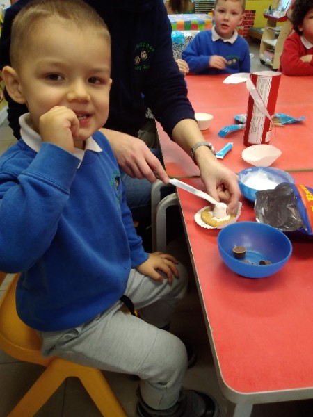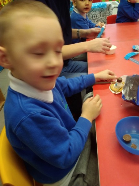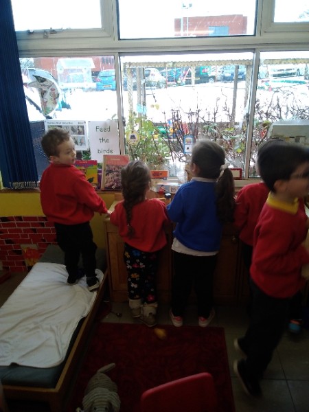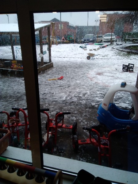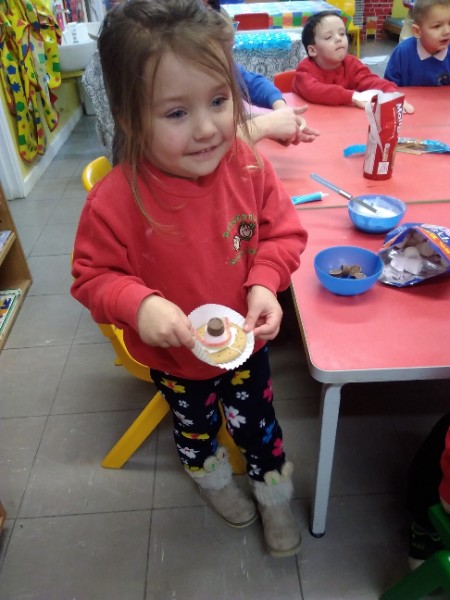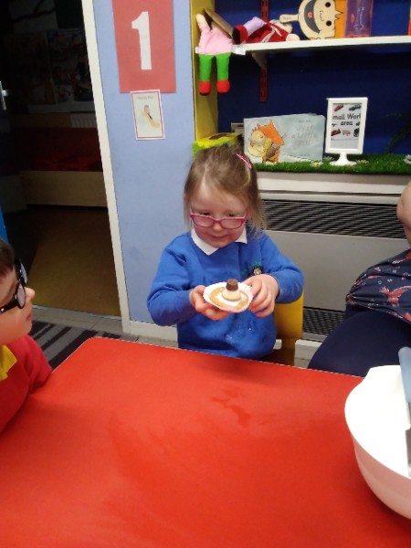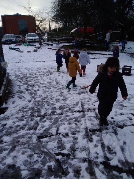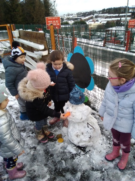 It Snowed on Tuesday! Mrs Hudson's boys and girls were very excited. Being led by the children's environment and the children's interest staff provided opportunities for the children to explore and investigate snow. There was lots of language development as we described the snow as we played outside. We developed our physical skills as we moved, pushed and lifted snow. We developed our maths skills as we compared snowball size and shape. We developed our painting skills as painted snowy pictures and even snowmen. Best of all we designed and made our own melting snowmen biscuits.
