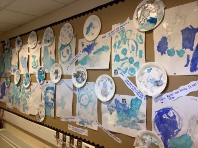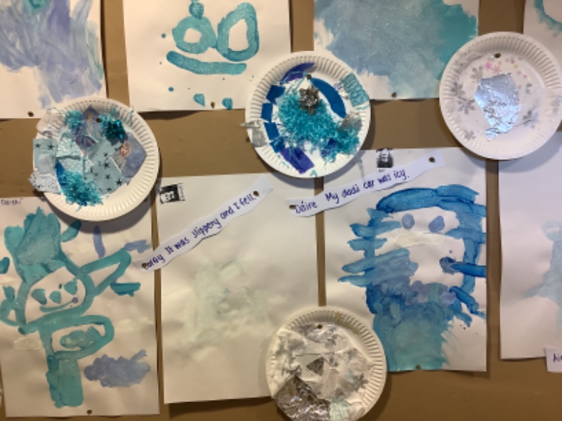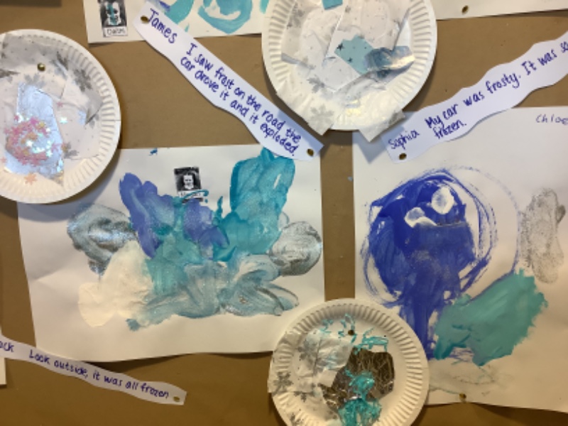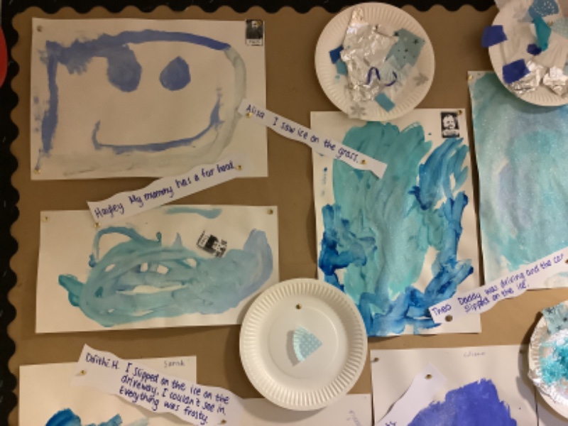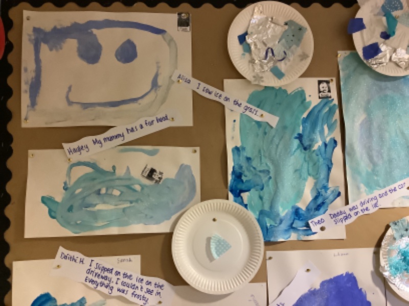 Jack Frost made the world all white and frosty this morning. We painted pictures!
