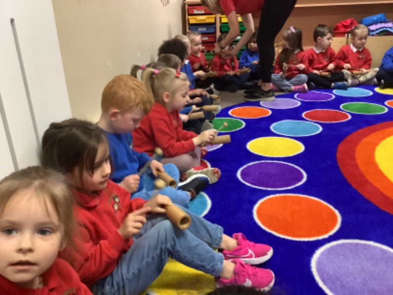 We had lots of fun with Jo Jingles discussing what we grow in our gardens and the noises we might hear in the garden. We practised our good listening and co-ordination skills as we tapped and scraped the Guiro instrument to the song.