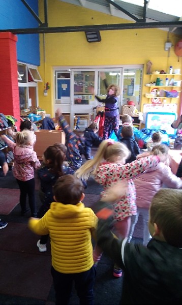 Mrs. Hudson's Class enjoyed their Jump Jiggle and Jive session with Carryl today.