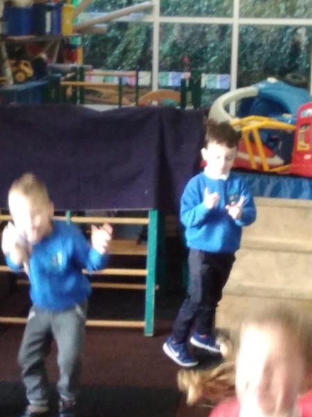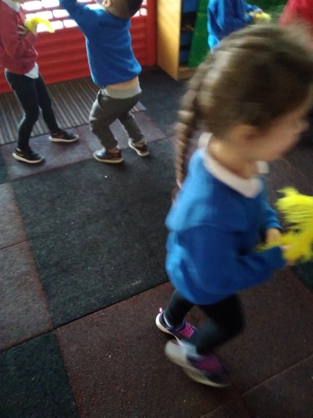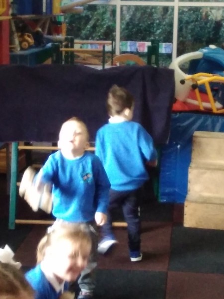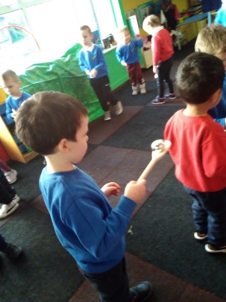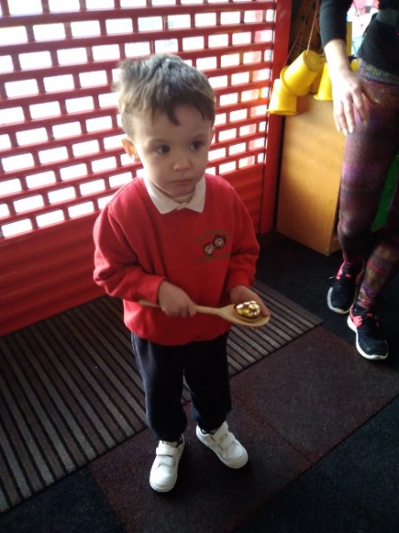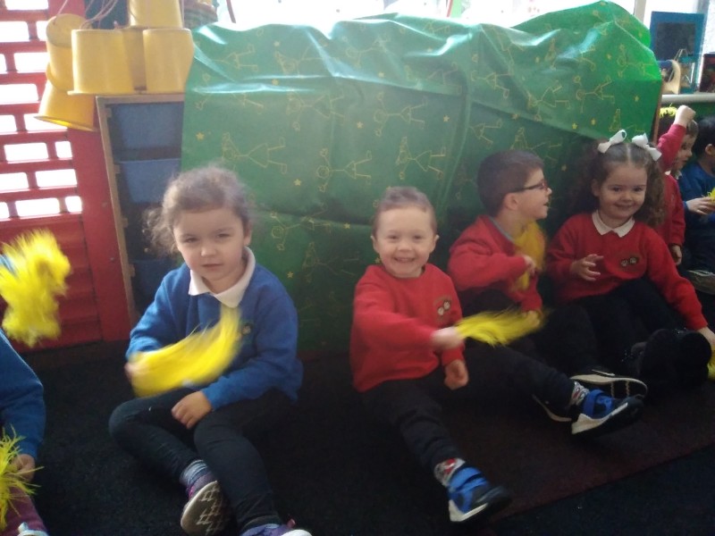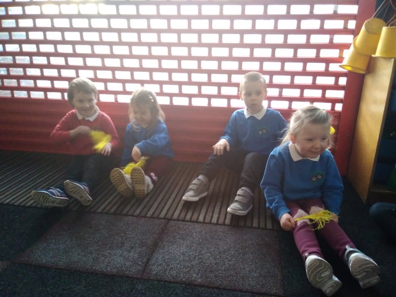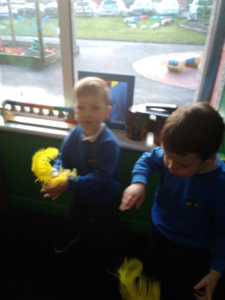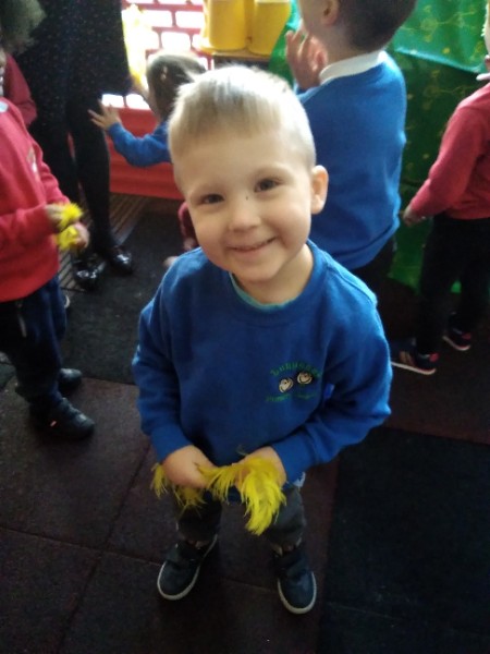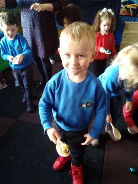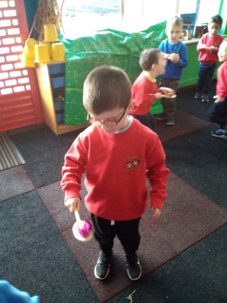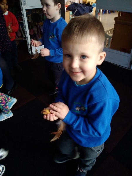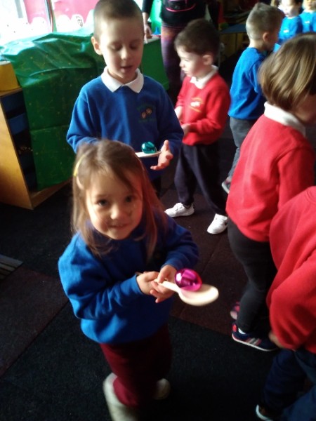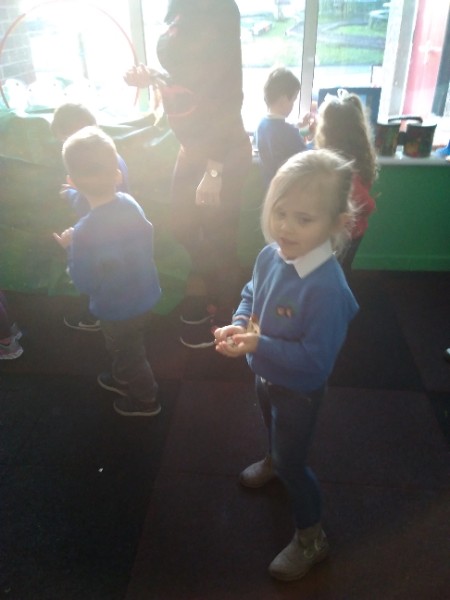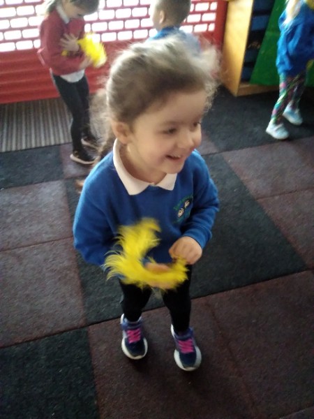 The boys and girls enjoyed their music and movement session with Jump Jiggle and Jive today. We all had great fun with floating feathers, sleepy baby mice and golden eggs and spoons.