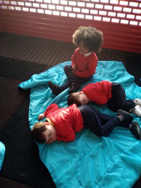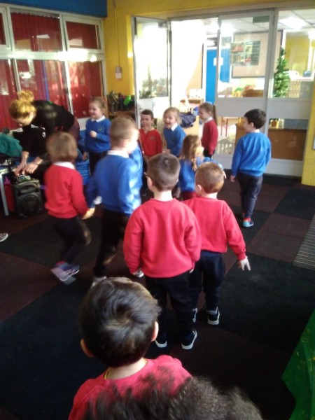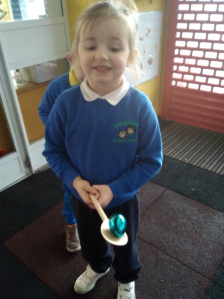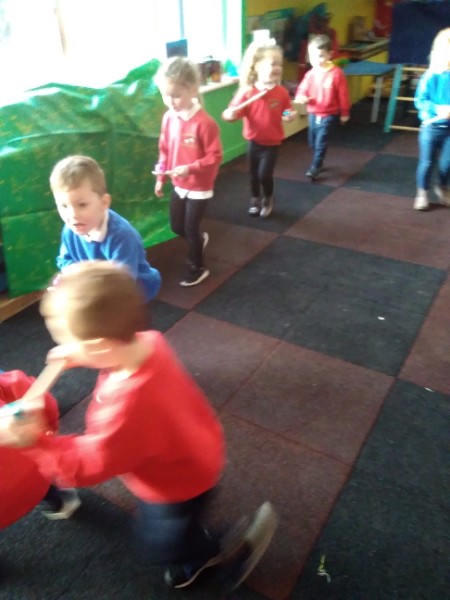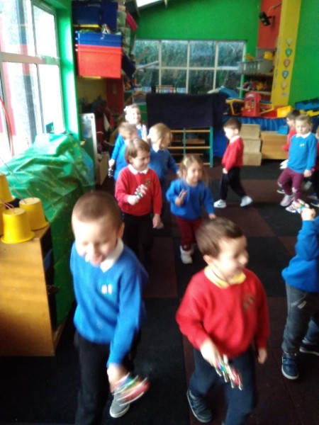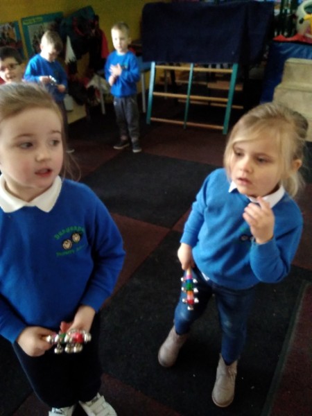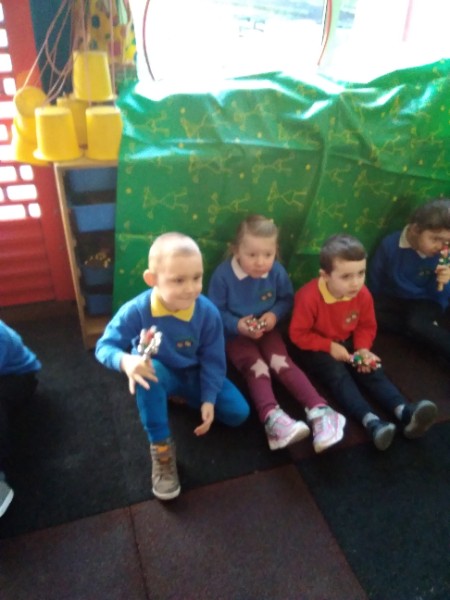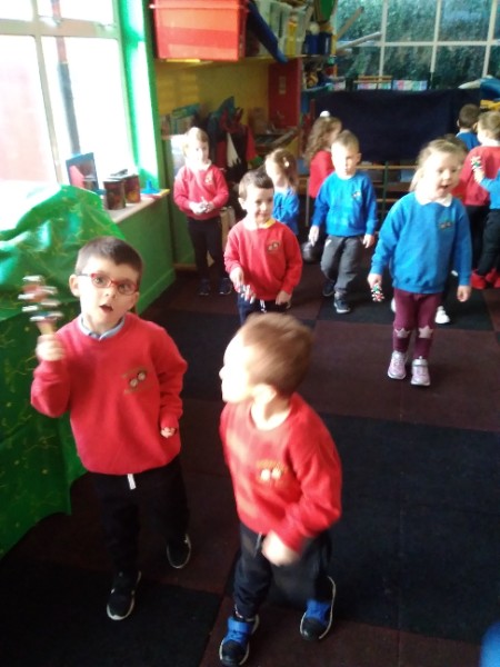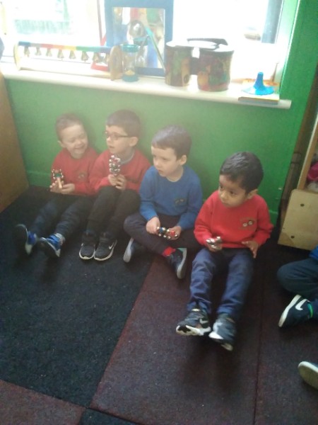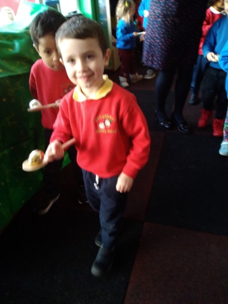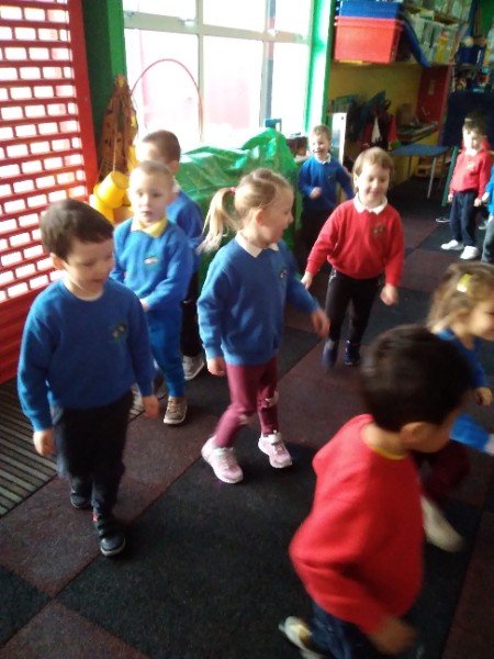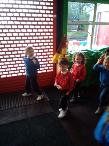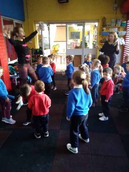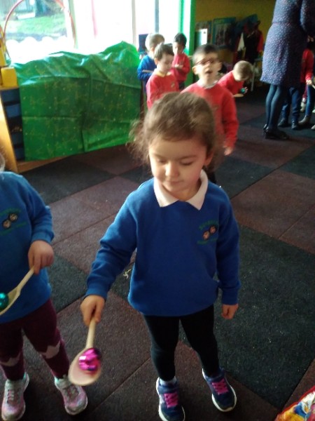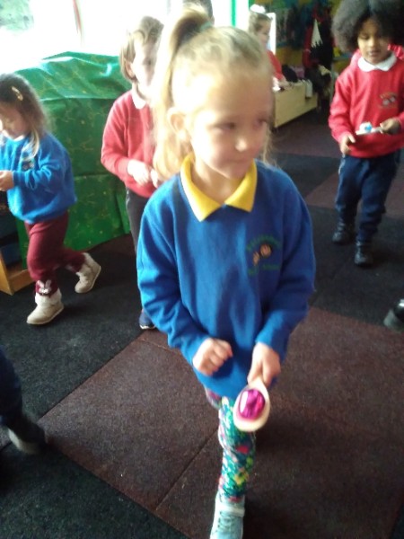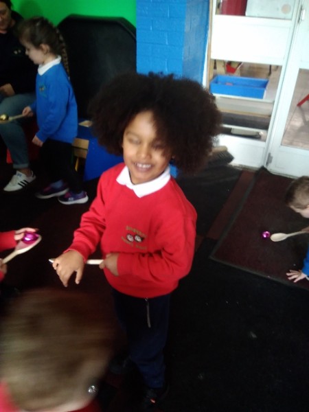 The boys and girls enjoyed their music and movement session with Jump Jiggle and Jive today. We all had great fun with floating feathers, sleepy baby mice and golden eggs and spoons.