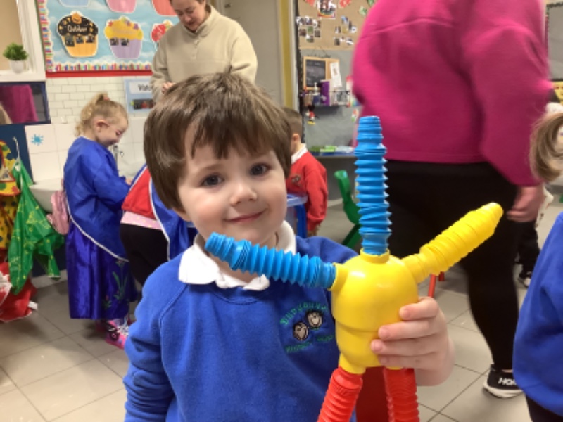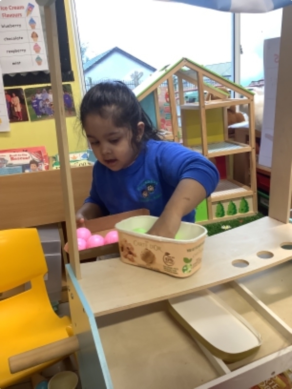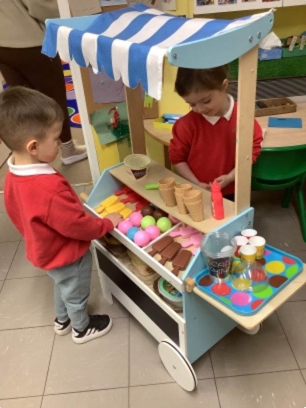 We have had another busy week in nursery school with Rugby Tots and Kidzwellness. We also constructed models using Popoids, playdough and recycled materials. We took turns being the shop keepers and customers at the ice-cream parlour and learned about animals from cold lands.