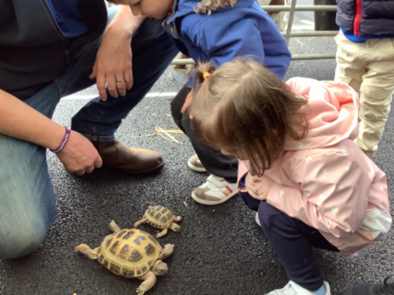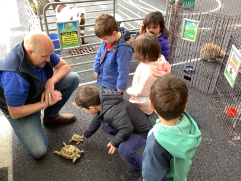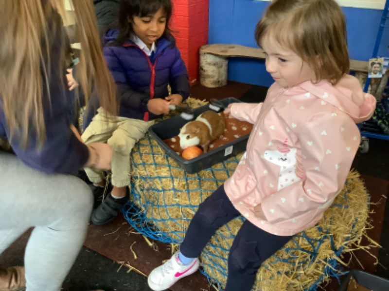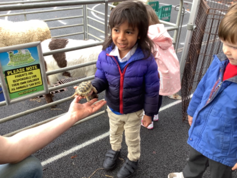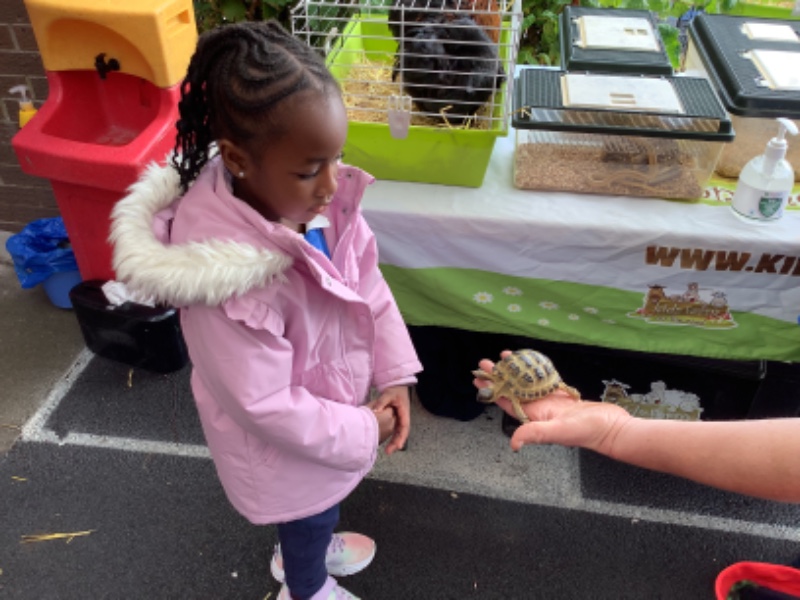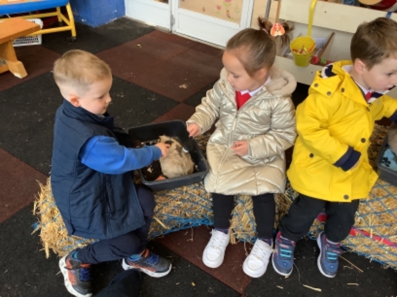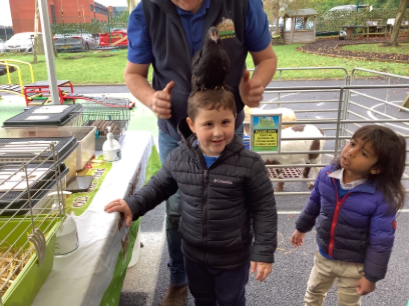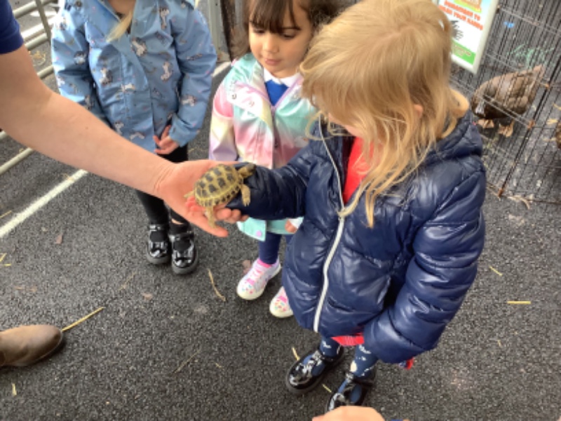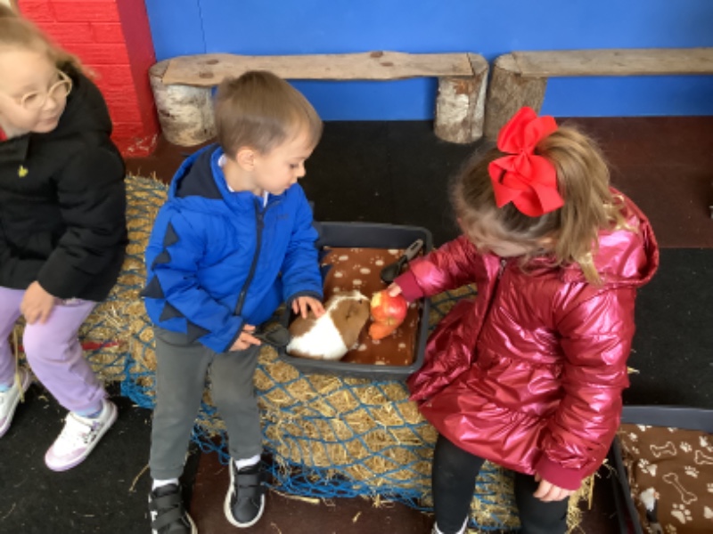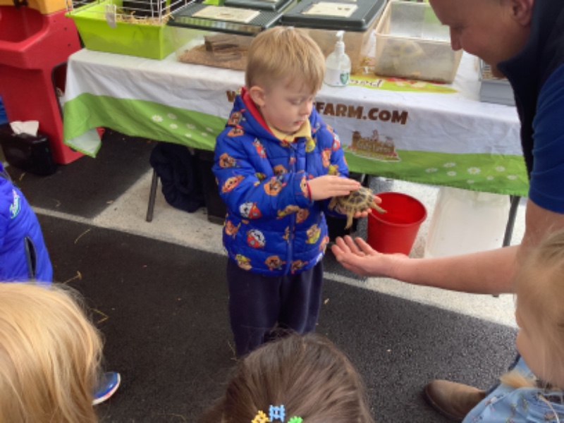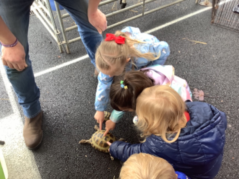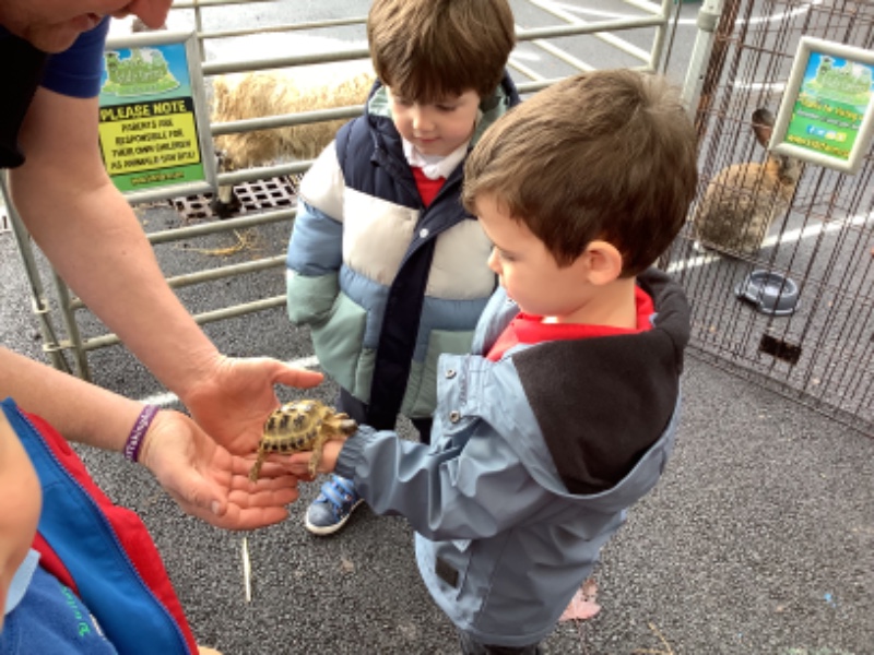 Kidz Farm visited nursery school to coincide with our farm theme in class. We got to brush/feed the Guinea pigs and rabbits, stroke the tarantula,snake and tortoises and some brave boys and girls even tried on a chicken hat. Fantastic fun had by all the children and great to learn about what the animals eat and where they originate from.